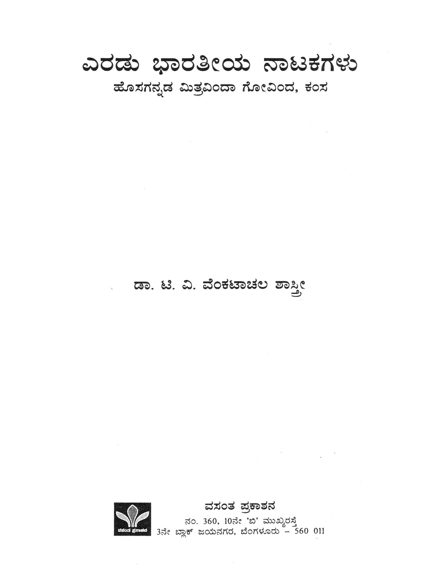 Rabindranath Tagore: Eradu Natakagalu- Rabindranath Tagore's Two Plays 'Natir Puja' and 'Chandalika' (Kannada)