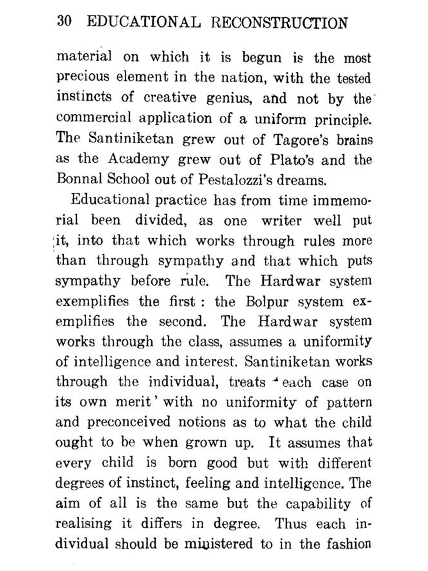 These are only reflective of the vast changes that have been taking place in India, movements that have been broadening the basis and renovating the ideals of Indian society. The last quarter of a century has brought nations and civilisations more into direct contact with one another. Englishmen have found out as Sir Michael Sadler said lately that India is but next door. The reaction of this culture-contact has been tremendous in India. It is expressing itself in all phases of national life. In politics, in art, in literature, no less than in education, this movement to examine, to re-adjust and if necessary to reform has been very decided and clear.