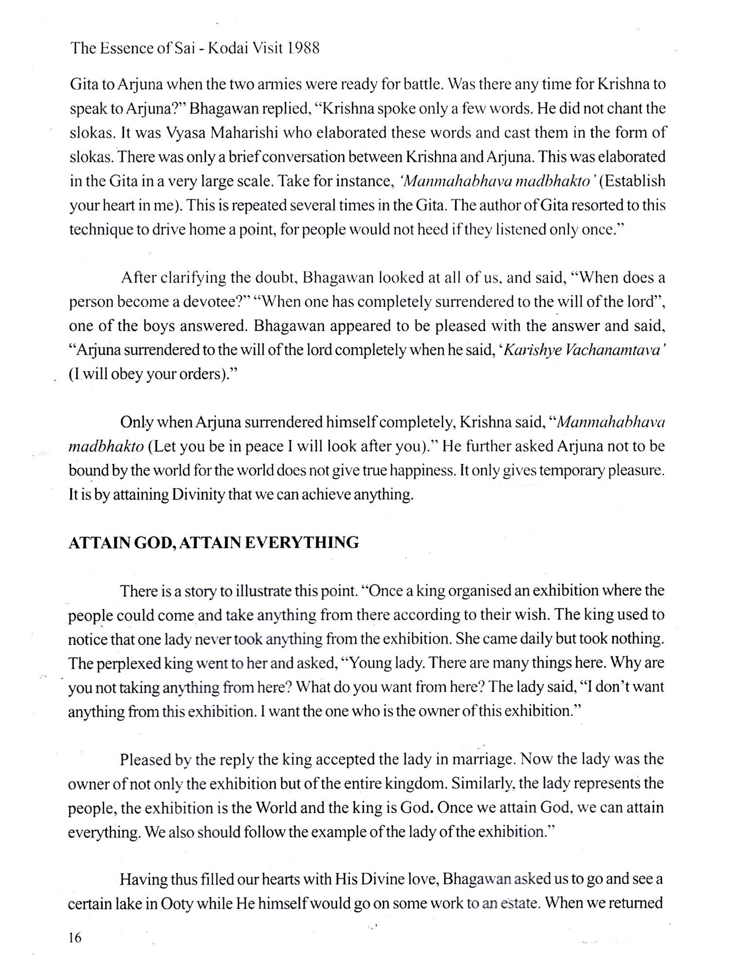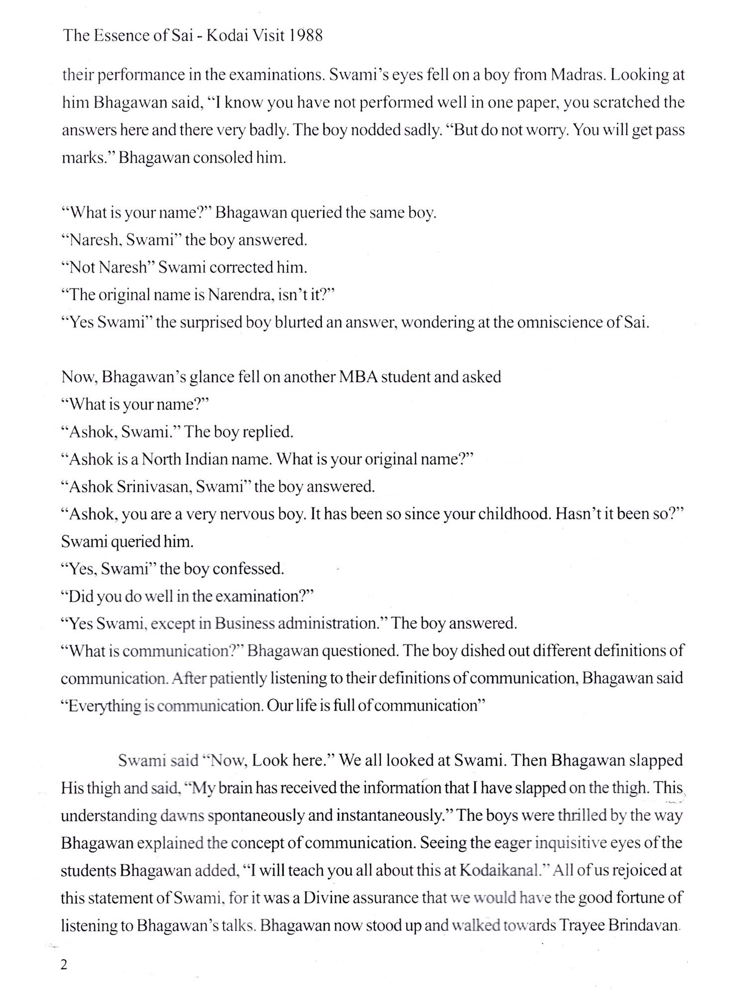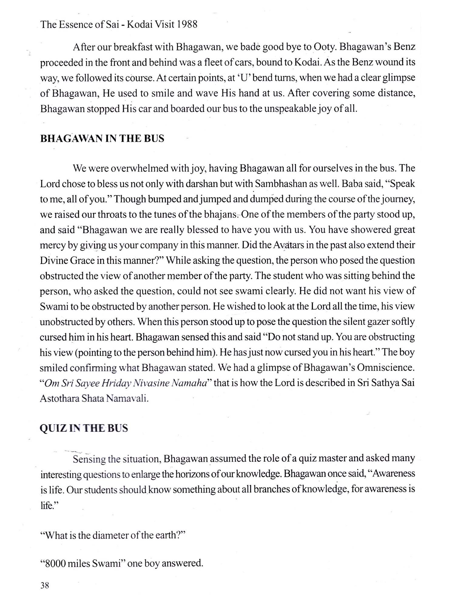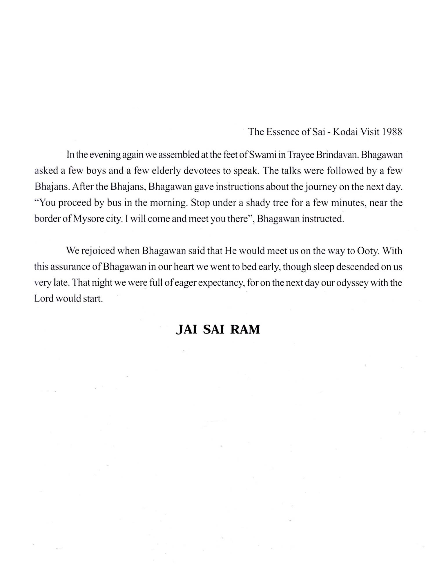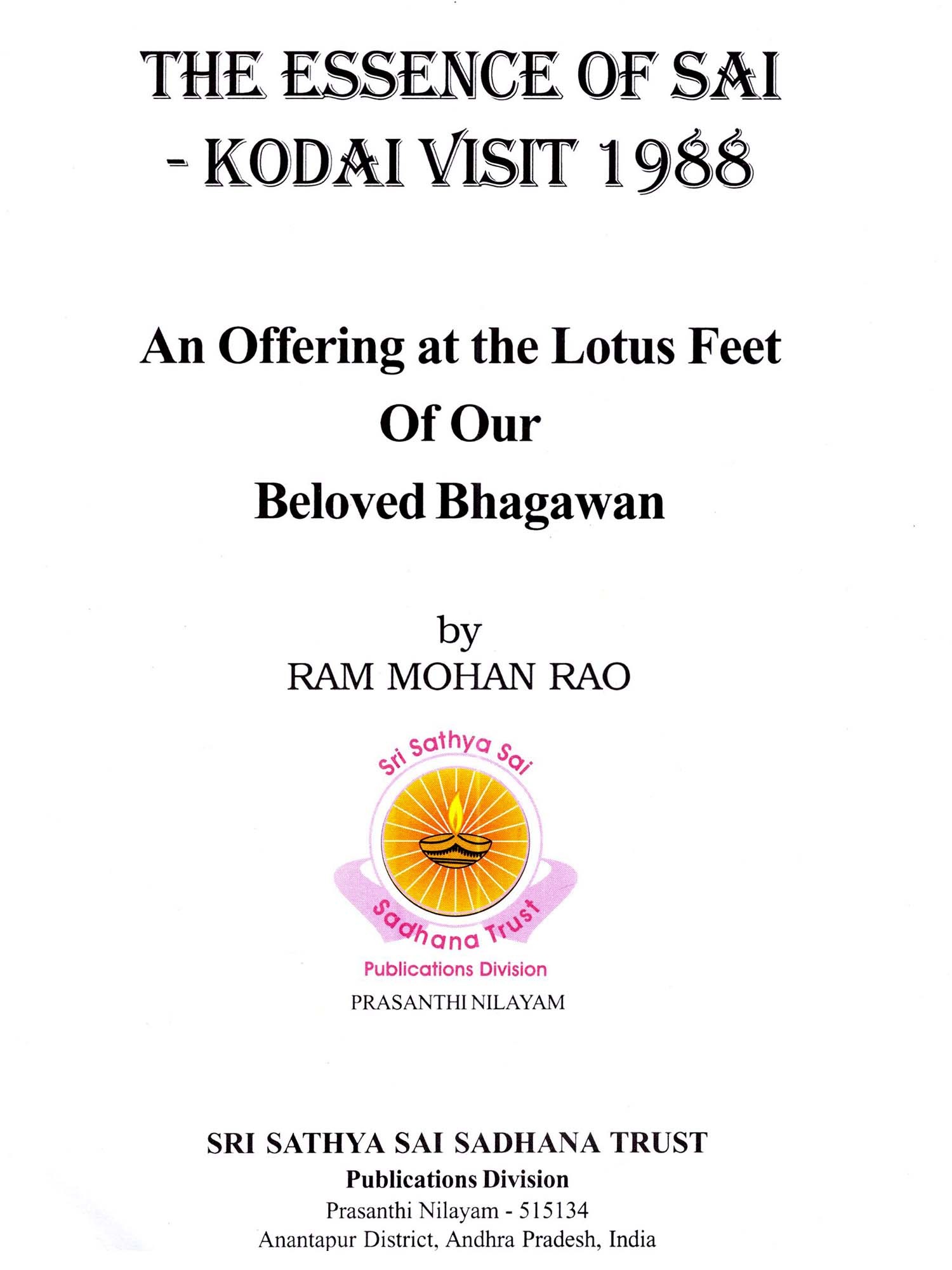 The Essence of Sai: Kodai Visit 1988 (An Offering at the Lotus Feet of Our Beloved Bhagawan