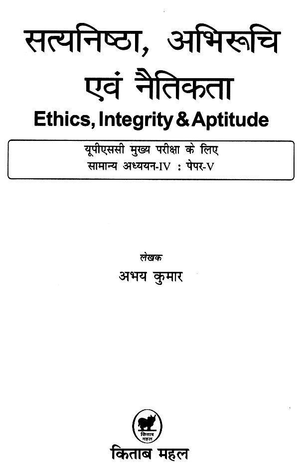 समय आ गया है जब जाति-पांति, बड़ा-छोटा, धर्मान्तरण इत्यादि संकुचित परिप्रेक्ष्य के सूक्ष्म विषयों से विषयांतर करते हुए, भारत के राष्ट्रांतरण की बात की जाए। विकासशील से विकसित राष्ट्र के रूप में राष्ट्रांतरण की प्रक्रिया बिना नैतिकता के संभव नहीं है। विकसित राष्ट्र बनने के लिए भारत में सिर्फ भौतिक एवं सामाजिक अवसंरचनात्मक विकास पर बल देने की आवश्यकता नहीं है बल्कि नैतिक अवसंरचना के विकास पर भी बल दिए जाने की आवश्यकता है। यह पुस्तक इस दिशा में एक छोटा सा प्रयास है। नैतिकता, सत्यनिष्ठा व अभिरूचि के बारे में जागरूक पाठकों के लिए, सिविल सेवा की तैयारी करने वाले विद्यार्थियों के लिए विशेषकर हिन्दी माध्यम के विद्यार्थियों की भावनात्मक माँग पर मैनें इस पुस्तक को आपके सामने प्रस्तुत करने का प्रयास किया है। इस पुस्तक की कल्पना से रचना तक के इस दौर में कई लोगों का योगदान रहा है। इसमें सबसे पहले मेरे प्यारे हिन्दी माध्यम के विद्यार्थी हैं, इनकी आशाओं, आकांक्षाओं और अपेक्षाओं ने सदा मुझे इनके लिए कुछ करने को प्रेरित किया है। इसके अलावा श्री मनोज कुमार सिंह, श्री एम०के० मोहन्ती, श्री निर्मल गहलोत, श्री नीरज सिंह का भी मैं तहे दिल से आभारी हूँ, इनके भावनात्मक सहयोग व अनुराग के बिना लेखन कार्य को सम्पन्न करना संभव नहीं था। मेरे सभी मित्र, सहयोगी व सहकर्मियों को भी बहुत-बहुत आभार। मैंने यथासंभव यह प्रयास किया है कि विद्यार्थियों की माँग को पूरा कर सकूँ। परंतु, सुधार की अपेक्षा व संभावना हमेशा बनी रहती है। अतः हर प्रकार के सुधार के सुझाव का स्वागत है, आप अपना बहुमूल्य समय निकाल कर अपना सुझाव सीधे, मुझे दे सकते हैं। अंत में अपने सभी विद्यार्थियों के मंगल भविष्य हेतु बहुत-बहुत शुभकामना।