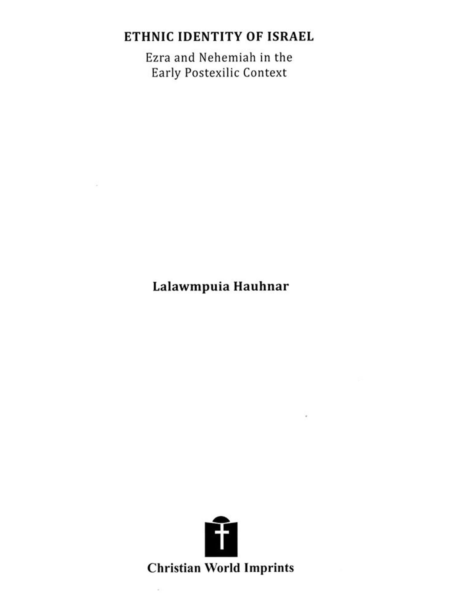 This book 'Ethnic Identity of Israel: Ezra and Nehemiah in the Early Postexilic Context' is an excellent research work undertaken by Rev. Dr. Lalawmpuia Hauhnar in the year 2021. This research work dwells into the issues of identity, ethnicity and other related issues of community consciousness of the early postexilic community as reflected in the ancient community of Ezra-Nehemiah.