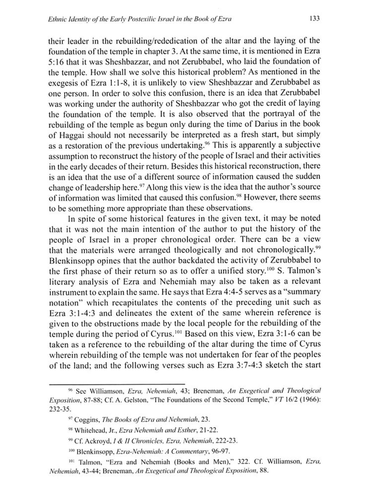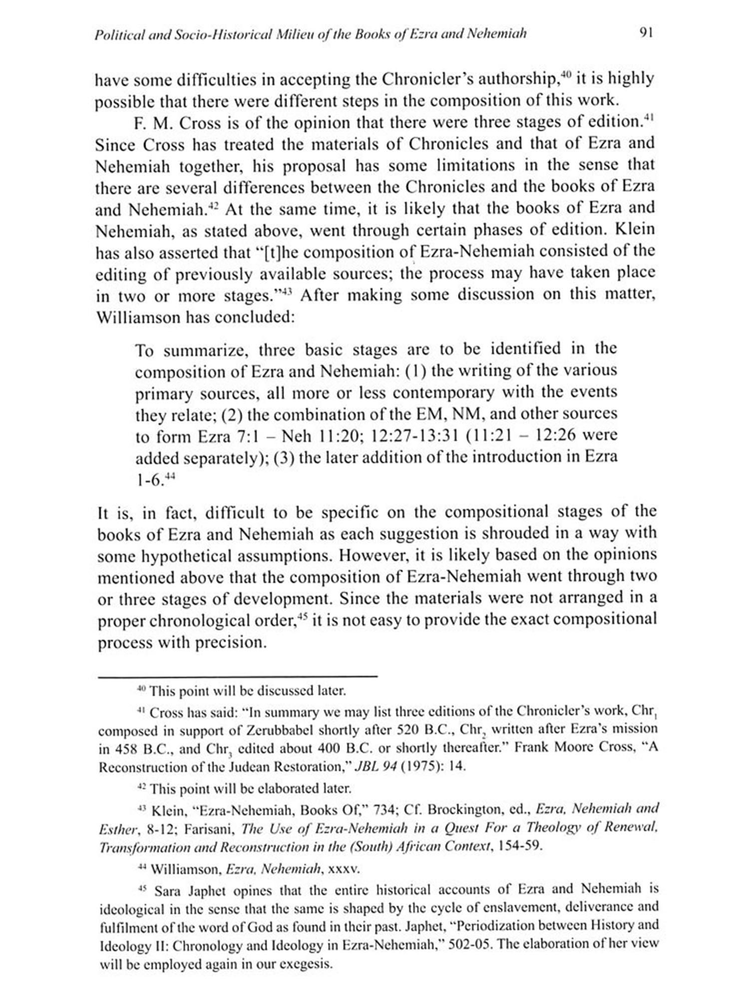This research is an invaluable contribution to the postexilic biblical scholarship as well as to understand the complex issues in the books of Ezra and Nehemiah.