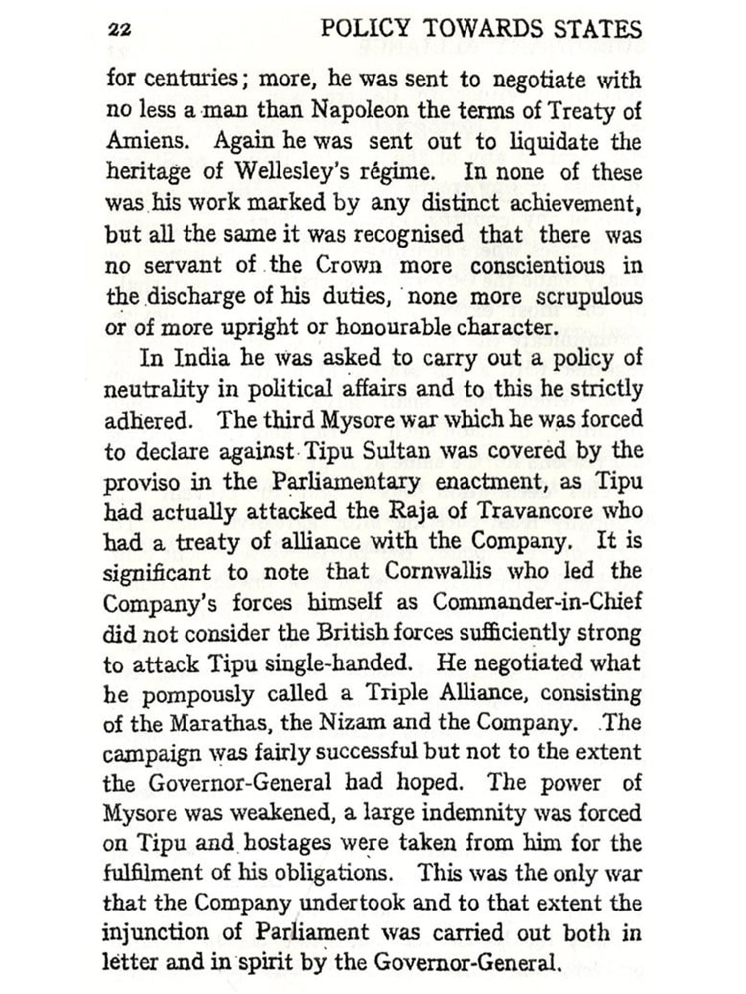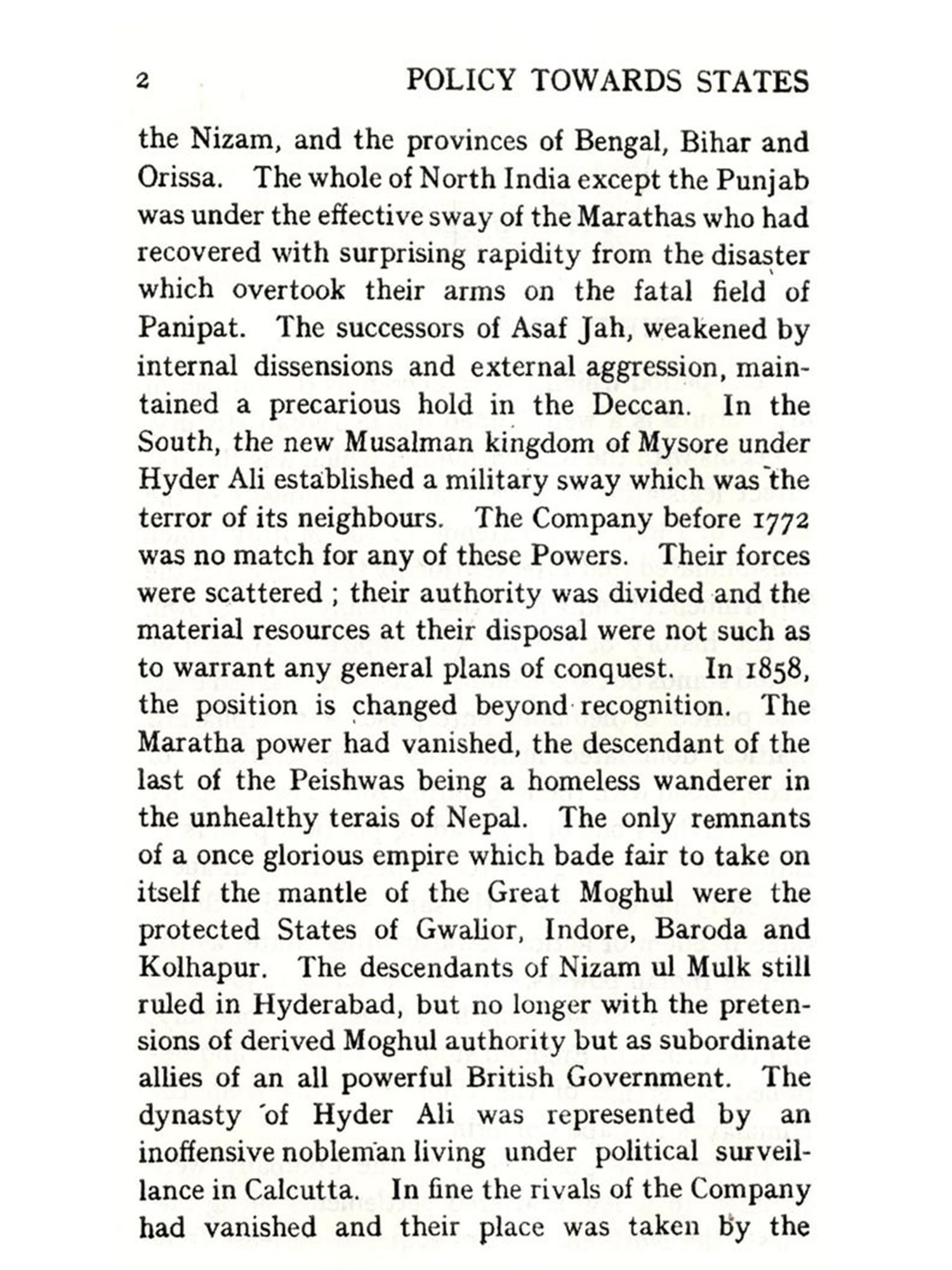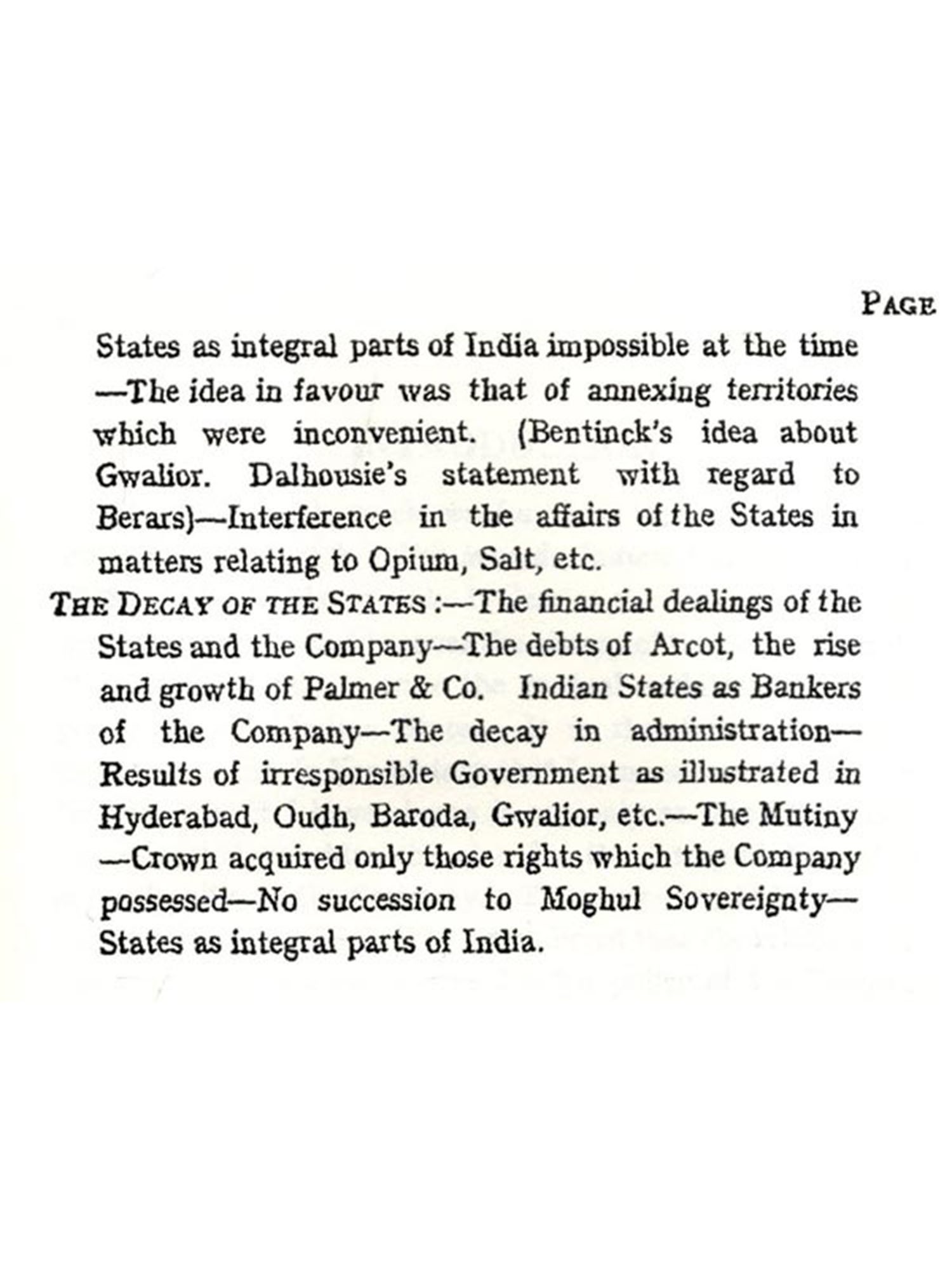 The subject I have chosen for these lectures is entitled the Evolution of British Policy towards Indian States from 1774 to 1858. I should like to make it clear at the very start that these lectures are not meant to cover the history of the period indicated. My purpose is only to trace the gradual evolution of a definite policy towards Indian States. It is therefore only with an aspect of British Indian history that I am concerned. It is true that the aspect I have chosen is not only an important aspect but one that provides the clue for the interpretation of the general policy of the Company. This may seem to be an extravagant claim, but when it is remembered that the relations with Indian States constituted the foreign policy of the Company, and the establishment of the British Empire in India outside Bengal was the gradual outcome of that policy, the claim will no doubt be granted by all fair-minded critics.