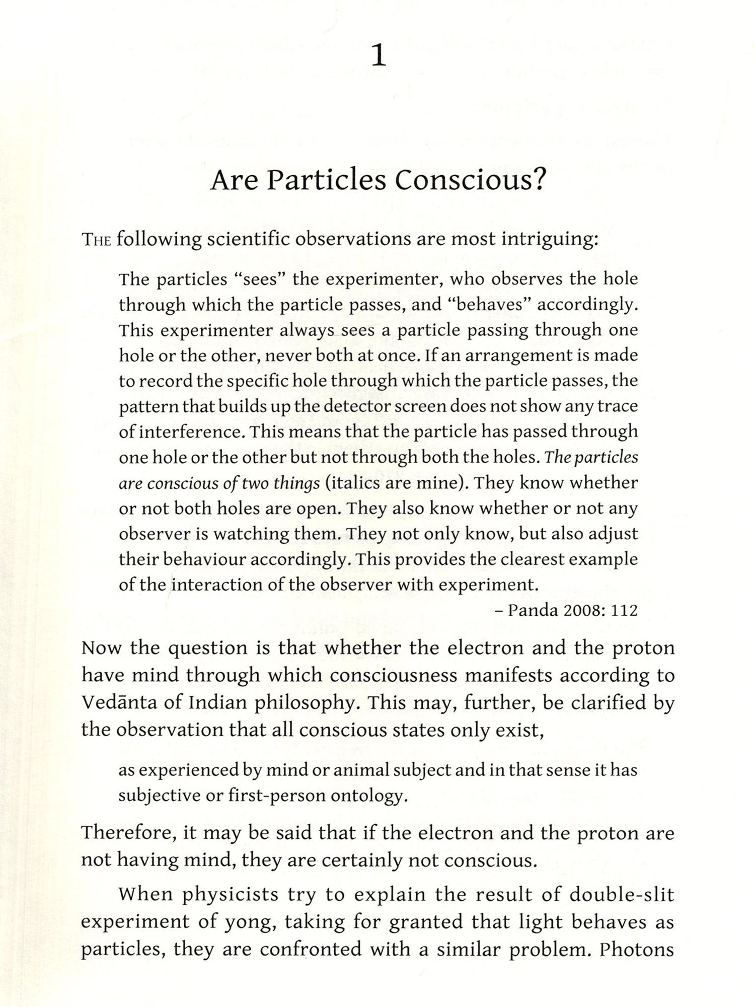 The photon is a particle associated with light. According to quantum theory, light consists of packet of energy (Narlikar 1978: 256). If one thinks that particles like electron and proton have mind and subjective feeling, it may be said that these statements are mere conjunctors.