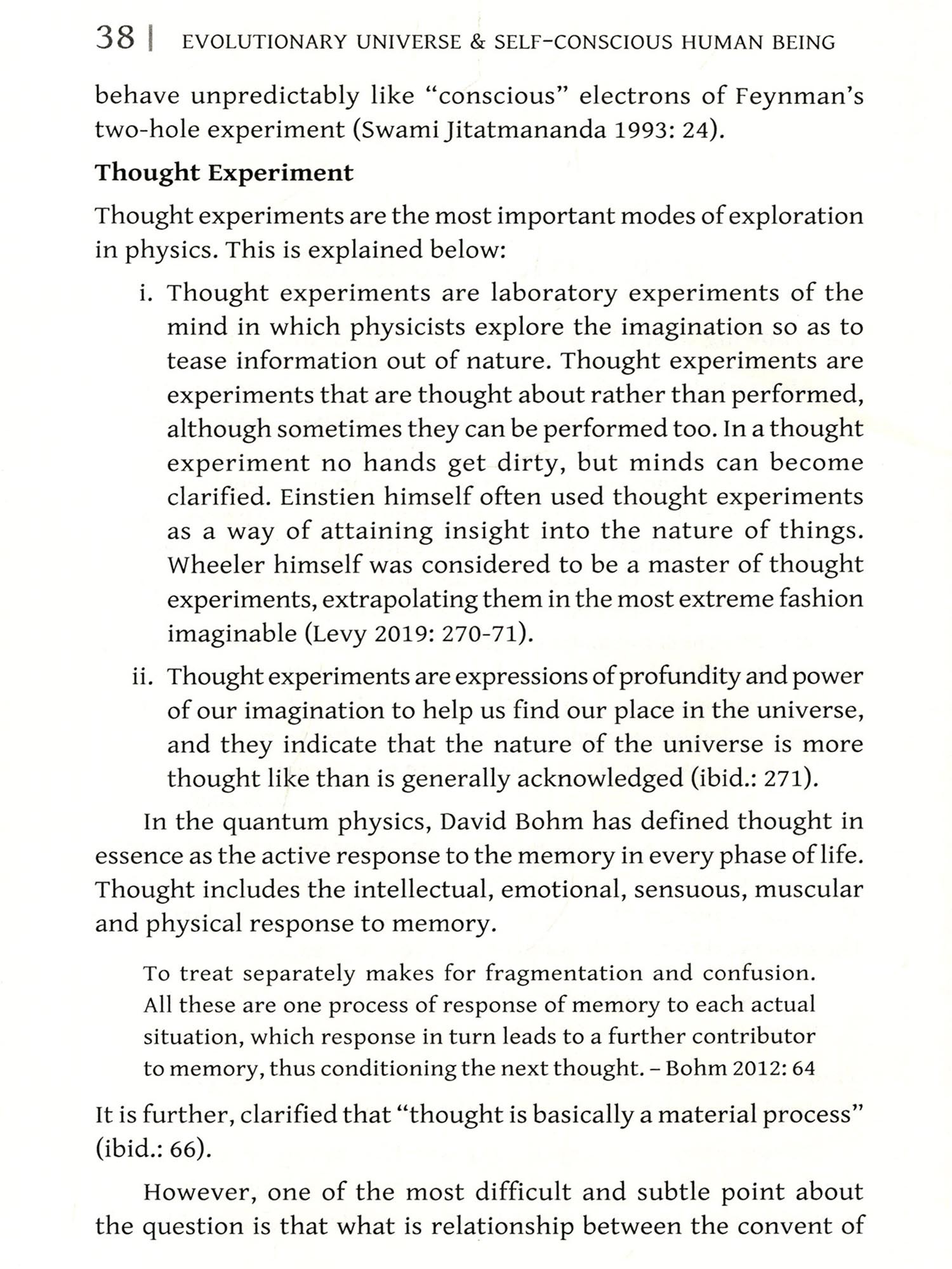 i. In the evolutionary universe and self-conscious being, the former is "out" there and like the latter is "out" here. If the latter "out" here does not exist, it is indeed difficult to know "out" there. This is mainly because human being is self-conscious, and therefore, he knows himself as well as the evolutionary universe.