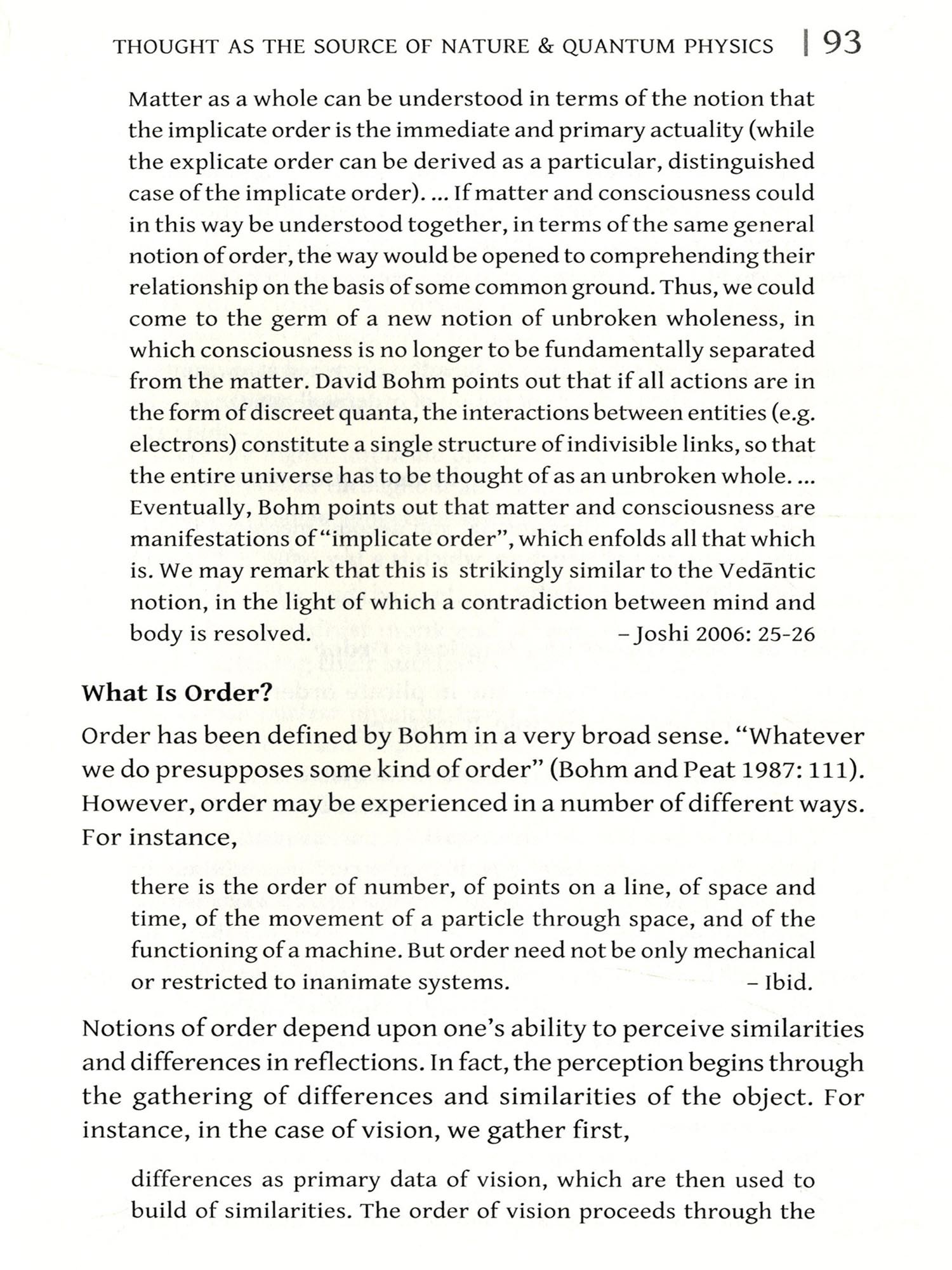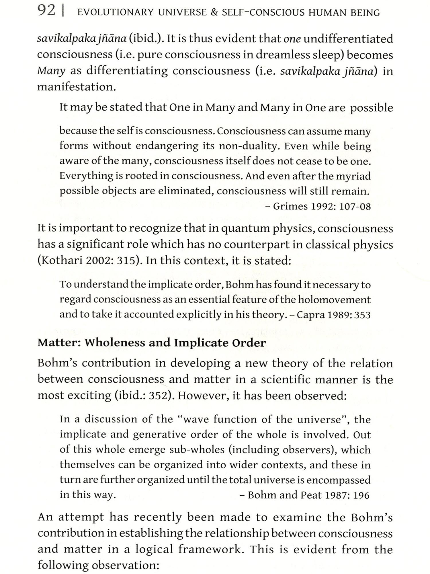 The observations regarding particles are, however, quite intriguing. In the case of electrons, it is stated that something like mind is already present in the electron (ibid.: 534). This works as a particle as well as a wave. Further, electron is negative particle forming constituent of an atom. The electron moves in orbits round a central atomic nucles (Narlikar 1978: 253). Yet, it is indeed difficult to say the particle like electron has mind. This is mere imagination. Similar is the case with photon. It is stated that photon has a degree of consciousness. In this context, the following observation regarding photon is worth stating: