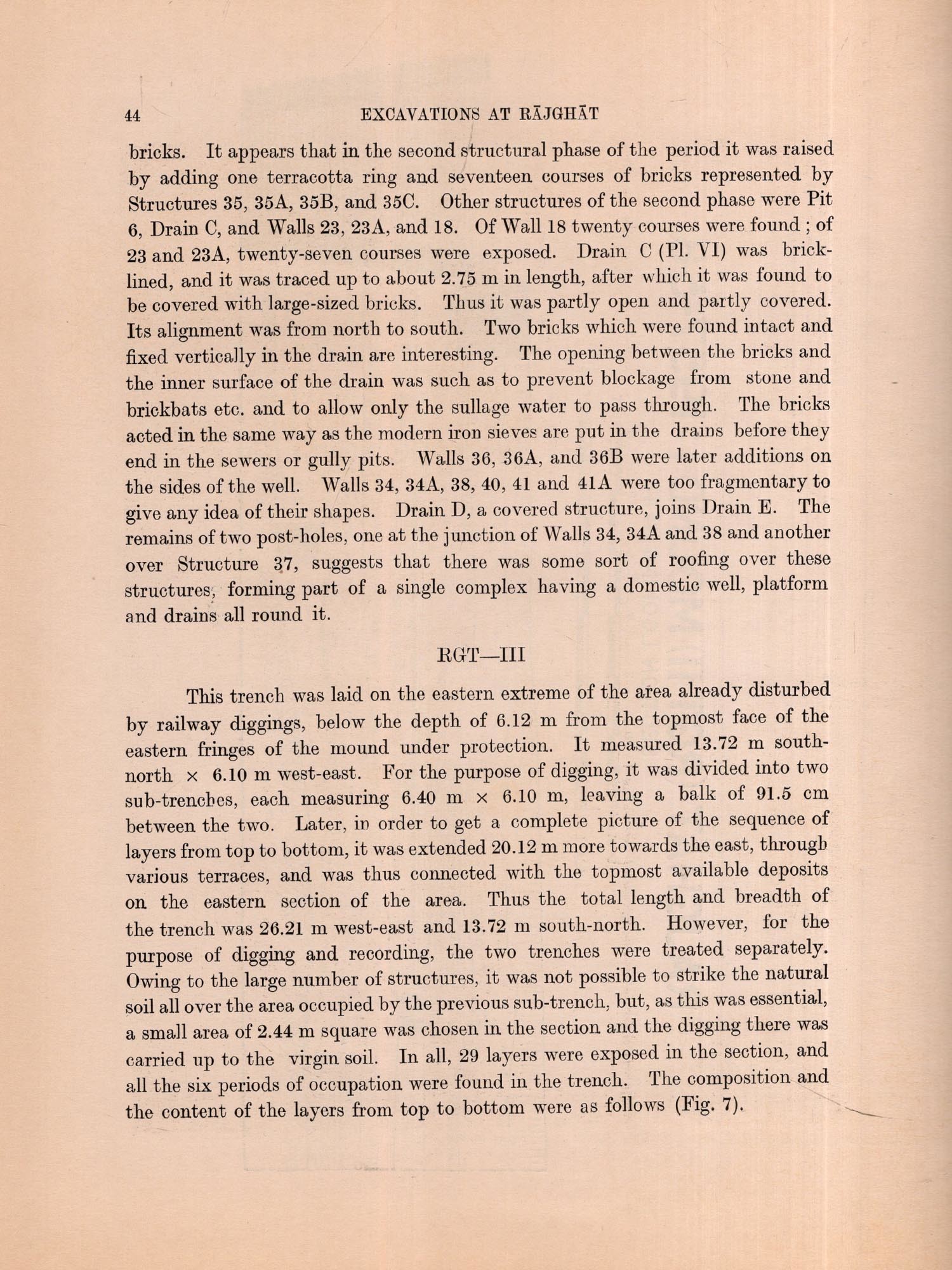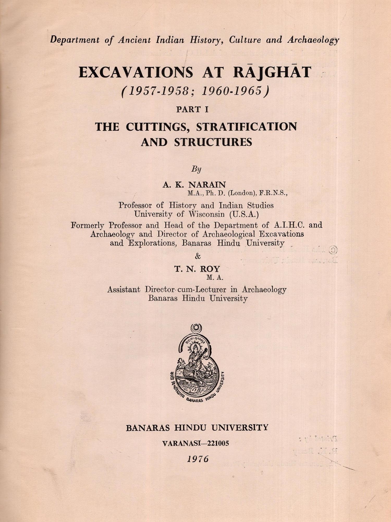 The present monograph is devoted exclusively to the report on the cuttings, their stratification and structures. The excavations at Rajghat were carried out by the Department in the year 1957-58 and between the years 1960 and 1969. Initially it was intended to publish this work of several years into one volume. This could not be done due to several unavoidable reasons. As many of the chapters were ready quite some time back, we felt anxious that the results of this important excavation should be published in the form of self-contained monographs incorporating the different aspects of findings of the excavation. We concode that this is not the most ideal solution but apprehending that there might be a delay in publishing the entire report in one or two volumes, we have thought of the present alternative. We accordingly seek the indulgence of the readers.