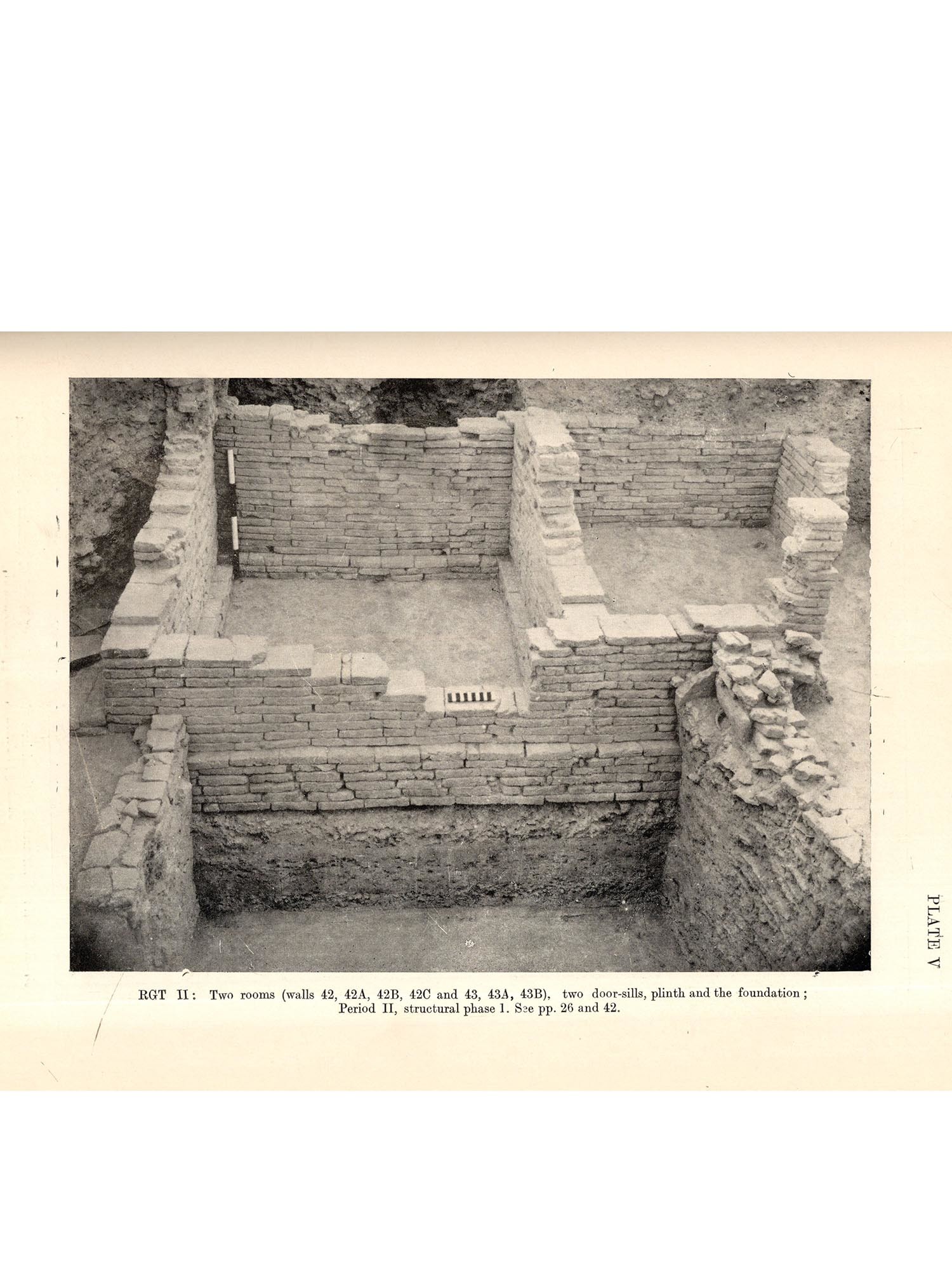 The entire region bears traces of ancient as well as modern habitation of man. However, as seen to-day there are three blocks of mounds labelled as Mounds 1, 2 and 3. As one approaches from the city side by Grand Trunk road, Mound 1 strikes the eye first. It is the main and the biggest mound. At placer it rises to a height of about 15 metres from the present ground level (Fig 2). The Grand Trunk road to the Malaviya bridge and beyond cute it unequally. It has also been cut in the west-east direction by a by-pass road to the Vasanta College for Women. The southern face of the mound has a fairly vertical section overlooking the left bank of the Ganga. The northern face overlooking the rig... bank of the Barna is less vertical and of less height. On top of this mound exists the present Kashi Railway Station and its godown, the Vasanta College for Women, and the Lal Khan's tomb. To these modern buildings have been added recently a couple of residential quarters and offices of the Akhil Bharat Sarva Seva Sangh and the Gandhian Institute. In spite of these disturbances, a consider-able part of the mound was available for excavation. The strategic position of Mound 1, with its precipitous scrap surrounded on the south-east by the Ganga (Pl.I A and B), on the north and northeast by the Barna and towards west and north-west probably by a moat is a significant indicator for the location of ruins of ancient Varanasi. The statements of Greaves¹ and Sherring that the ancient city of Varanasi stood farther north than at present, possibly, on both sides of the Barna, at a point where it joins the Ganga, also supports the above assumption. On the other side of the Barna, we could also locate the signs of ancient habitation at Sarai Mohana. This site about 0.33 km from the Lal Khan's RGT-I revealed the existence of as many as six cultural periods (numbered I-VI from bottom upwards) without any break in between all of them. RGT-II which was laid in the area already disturbed by the railway diggings at a depth of about 6.12 m from the top surface of the mound, brought to light the remains of Periods I, II, III and a few burnt brick structures of Period IV only. In RGT-III, all the six periods of occupation were found. RG1 IV, which was laid on the southern slope of the mound, connecting the alluvial deposit of the Ganga and the habitation, yielded the remains of a substantial bund or embankment besides the deposits of Periods I, II, III and IV. RGT-V, which was laid in the centre of the area under the protection of the Archaeological Survey of India, yielded deposits of Periods I and IV only. RGT-VI, was laid on the lowest part of the mound and brought to view the remains of a mud street of Sub-period IB. In other three trenches, RGT-VII, VIII, and IX. remains of Periods III, IV and VI were encountered. In RGT-X and RGT-XI which were laid in an entirely new sector adjoining the Foundation for New Education all the six periods were found. RGT-XII, laid in an intact area belonging to the Railway authorities was particularly rich in structures and yielded the finds of all the six periods. RGT-XIII, measuring 23 m x 56 m was rich in the pro-NBP deposits. The cultural sequence of six periods was further corroborated in this cutting. RGT-XIV, which was laid on Mound 2, yielded the remains of only Periods I and VI with a definite break between the two, indicating the desertion and subsequent reoccupation of the area. Ma and Ma revealed the existence of a small channel as well as confirmed The trial cuttings the signs of ancient habitation over Mound 3. Four trial soundings (RGT-S RGT-S RGT-S, and RGT-S,) taken within the premises of the Sarva Seva Sangh brought to view the remains of several structures of different periods and confirmed our observation that the habitation also continued even beyond the area protected by the Archaeological Survey of India.