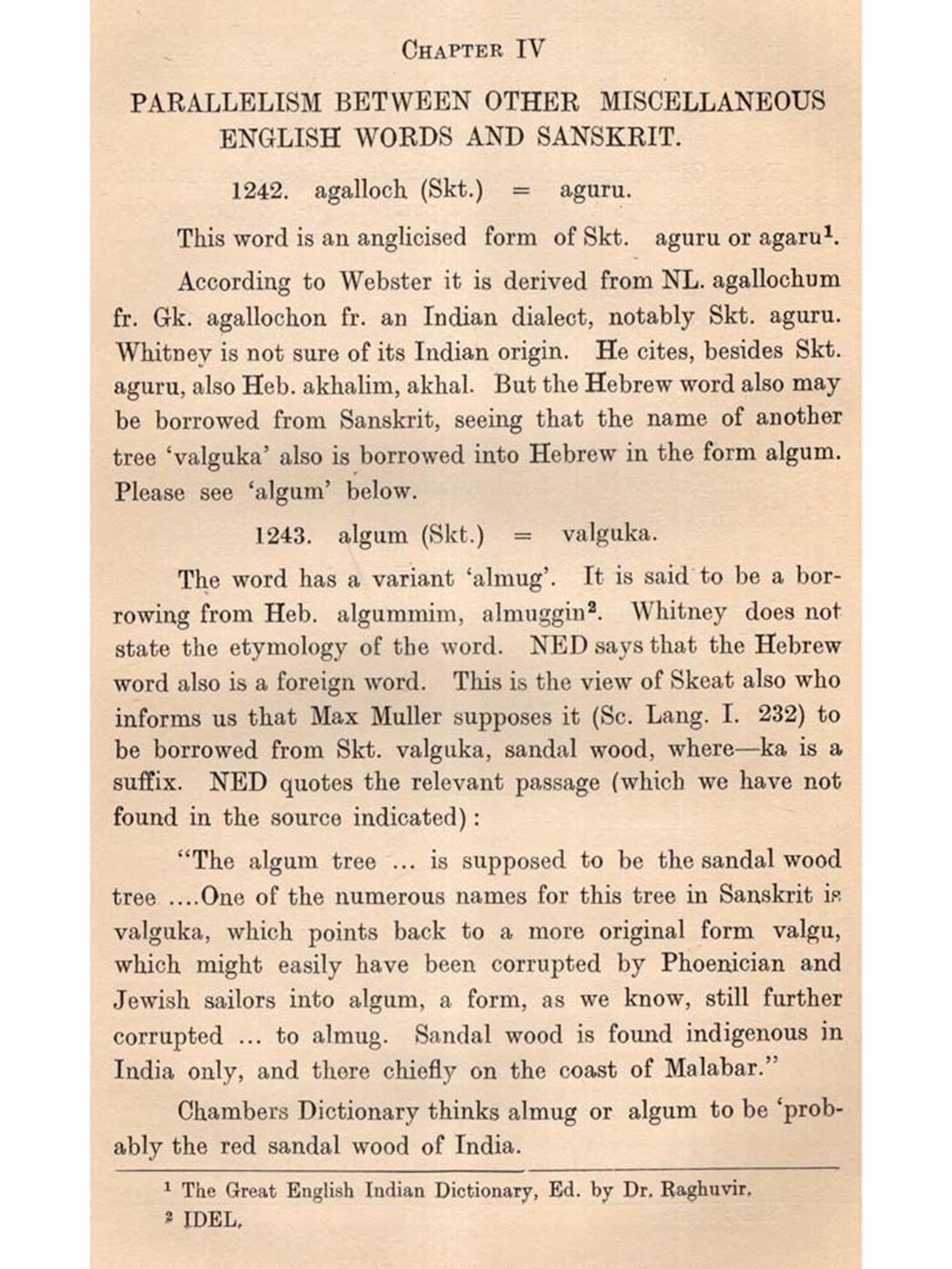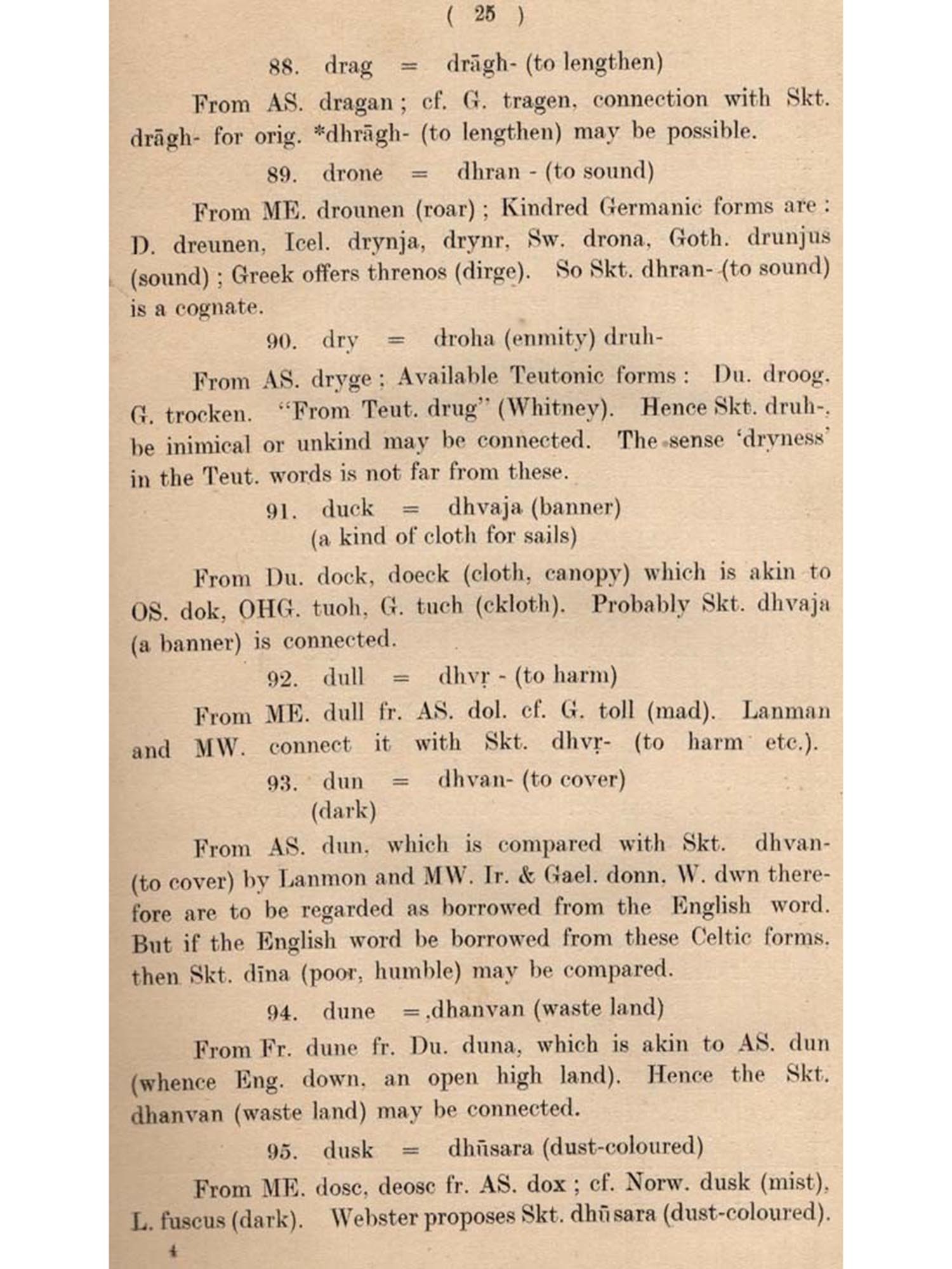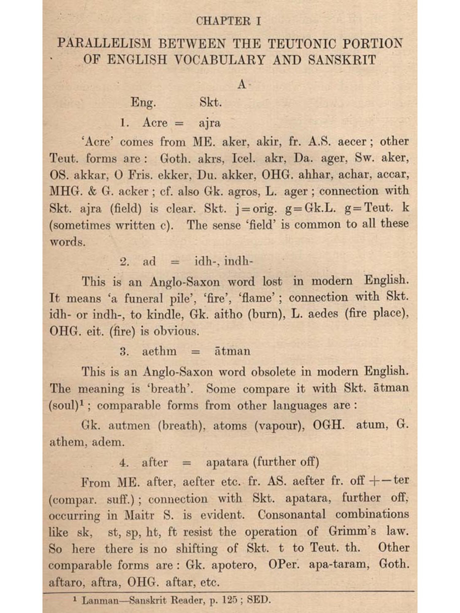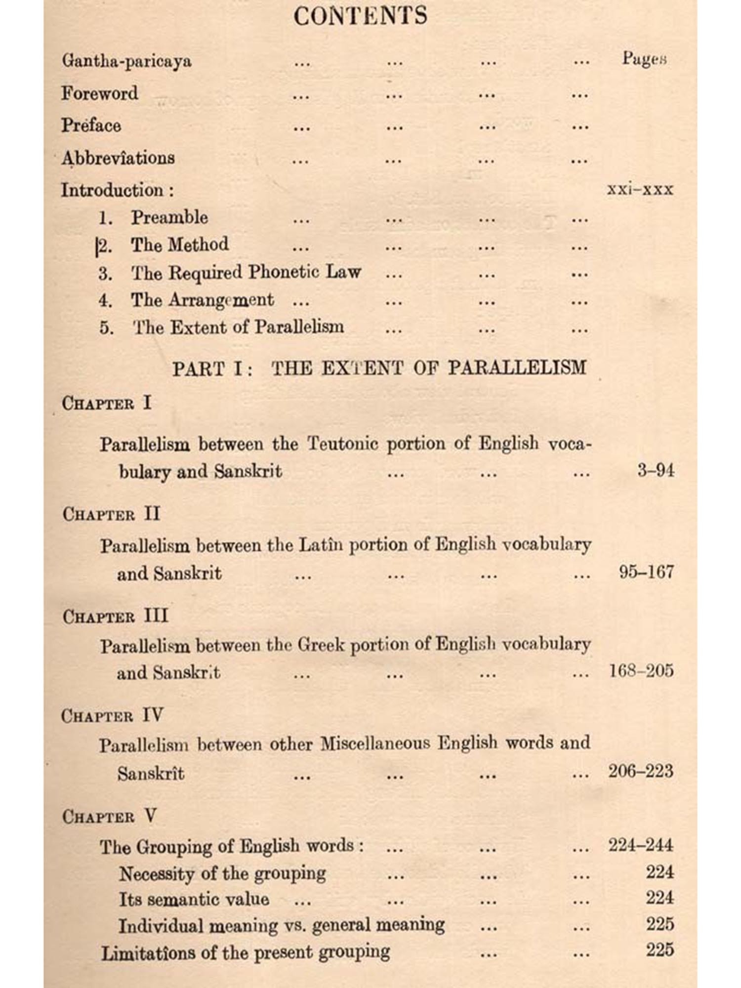 But this common vocabulary between English and Sanskrit has never been the theme of a treatise. Lexicographers have done something in this respect. But they have left out, willy-nilly, numerous cases, where an English word could be compared with a Sanskrit word. Besides, what is done by them in this regard is not palpable, being side-tracked by their otherwise vast etymological discussions. A treatise on Anglo-Sanskrit parallelism in vocabulary was thus a desideratum.