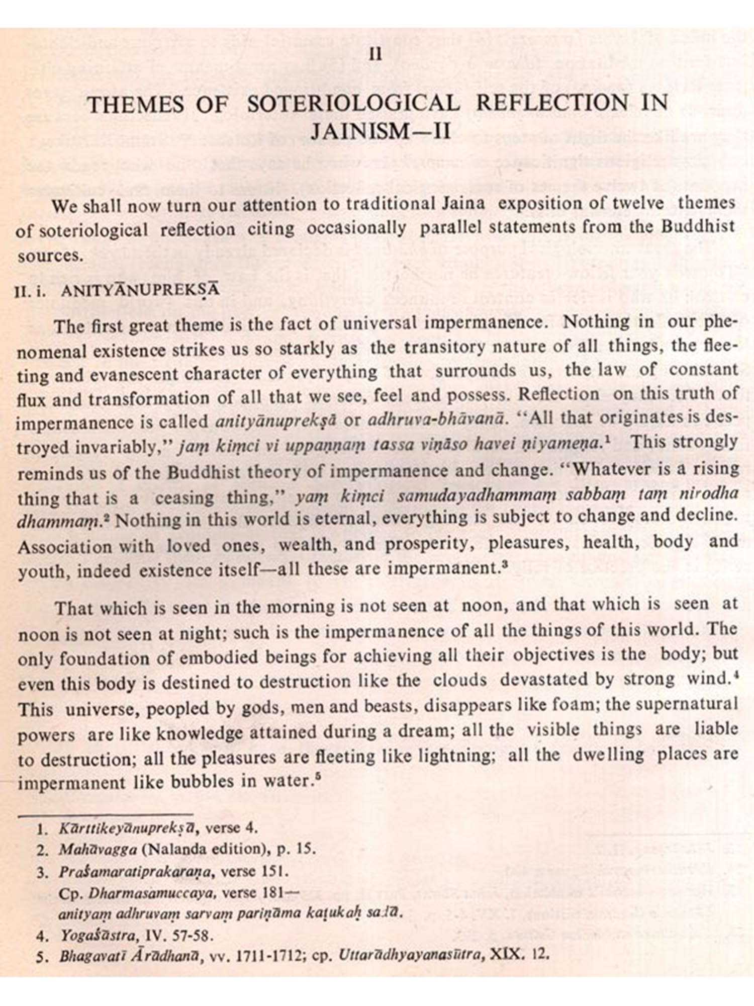 Soteriology includes doctrines and techniques that help man achieve salvation. One of the techniques of soteriological development is known as anupreksa. In the first two lectures the learned author extensively deals with twelve themes of anupreksa, often drawing our attention to the corresponding terms and concepts in the Buddhist texts and occasionally referring to similar ideas and methods in the Brahmanical texts too. The comparative method applied to this problem makes the treatment interesting and revealing. His Preliminary Remarks (Li) are thought-provoking and deserve special attention of the scholars.
