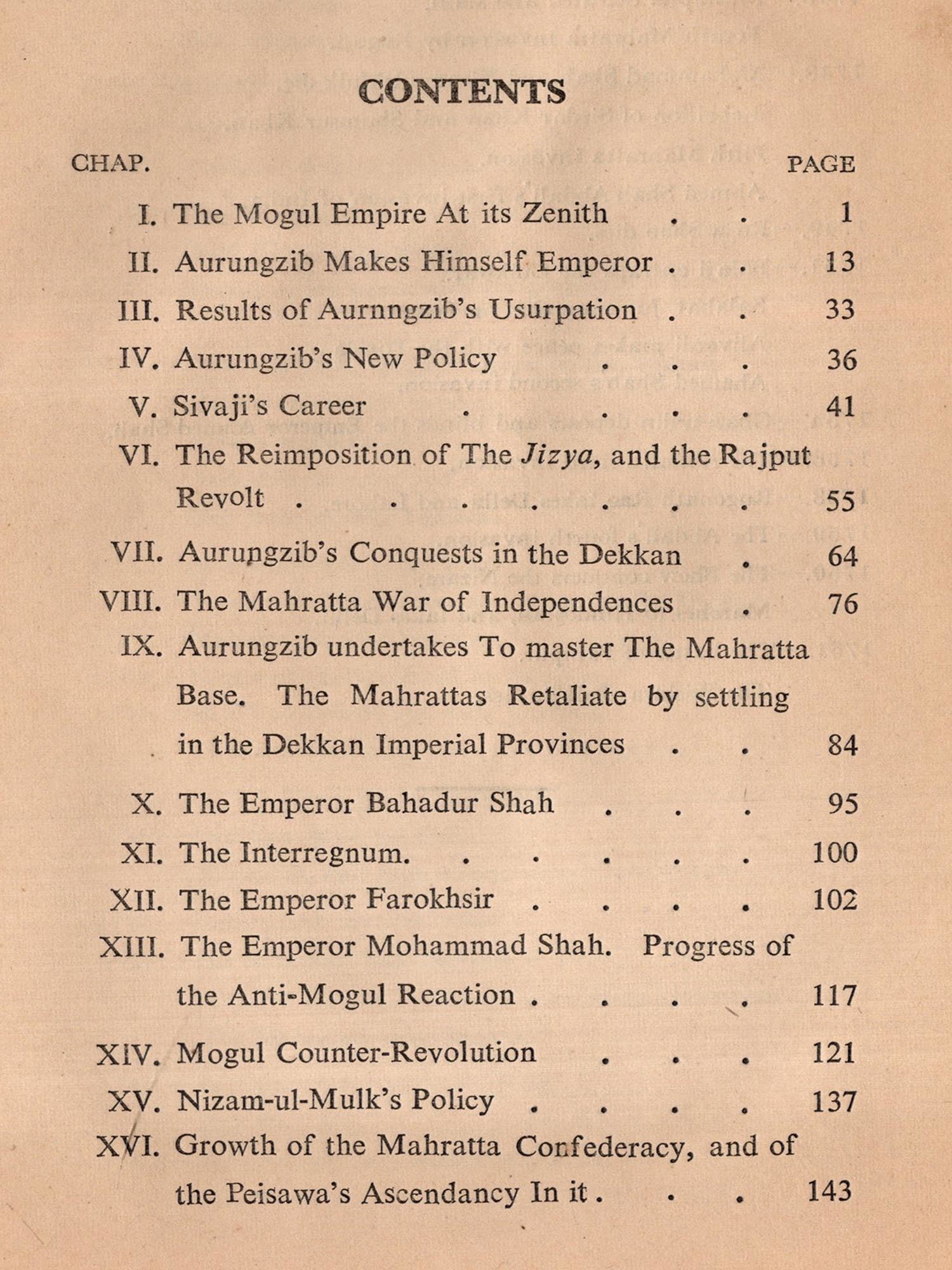 THIS book is not a regular history of the period over which it extends, but the substance of a course of lectures intended to trace the operation of the causes which, in the course of a century, reduced the mighty and far-famed Empire of the Great Mogul to a political shadow. Accordingly, events of minor importance, or not materially effecting the main issue, are not noticed. And others which are cognate to, and virtually repetitions of, what has been already related, are either omitted, or glanced at very summarily. And throughout an attempt has been made not to tax the memory with too many bald facts, but to bring out the salient features of the story, so as to enlist the imagination by suggesting a series of historical pictures.