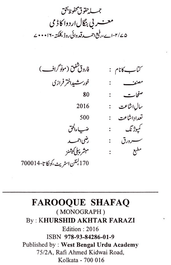 سید نواب جانی میرزا محشر مرشد آبادی: Syed Nawab Jani Meerza Mahshar Murshidabadi (Monograph in Urdu)