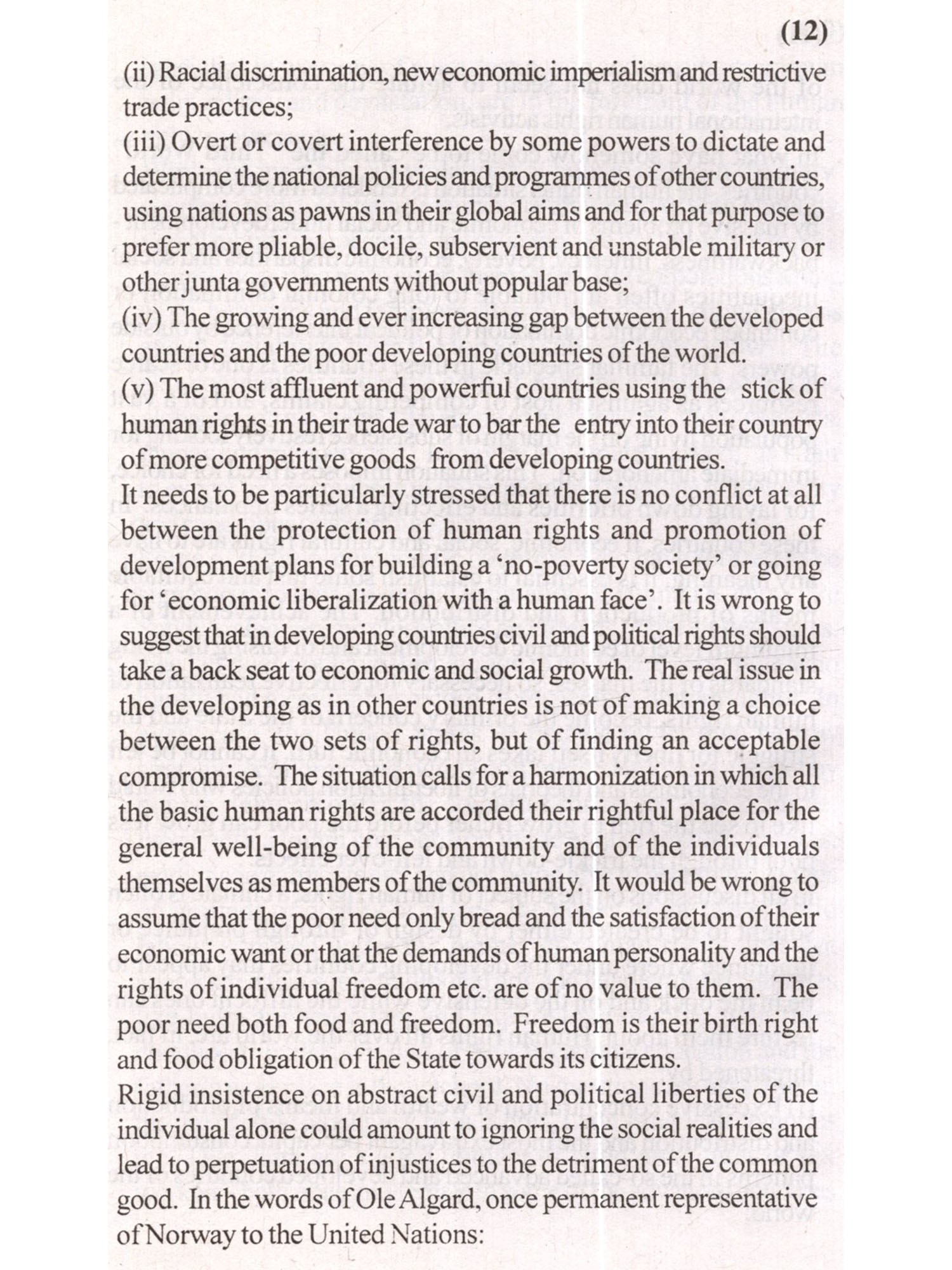 Although India has been following a tradition of SAMBHAB since the inception of humanity but its ironical that even after the 50 years of the universal declaration of the human rights in most of the societies we still find a wide spread discrimination on the basis of gender, ethnicity, religious believes etc. Actually the continuous violation of the human rights despite the several international conventions and treaties has emerged as a hot topic of discussions and debates in the academic forums because this condition is prevailing not only in the developing countries but also in the developed societies. The extent of such violations can be gauged by a survey done in 1993 by the Amnesty international which clearly highlights that political suppression, systematic torture in captivity, ill treatment, abduction, arbitrary arrest or disappearance is being practiced in 110 countries of the world. Such kind of treatment is not only against the human dignity, but, it also violates the principle that human rights are natural, equal and inalienable rights necessary for a life of dignity in the contemporary world. The gross violation of human values throughout the world has posed a threat to the human security, which revolves around the concept of freedom from fear and want. Almost all the people whether from rich societies or poor nations in some way or the other way are being denied the human rights. The people of the rich countries despite their prosperity and material comforts are also not free from problems and tensions. Their security is being threatened by problems that are the result of their social fabric, therefore security from the threat of crime and drug war, the spread of deadly diseases, soil degradation, rising levels of pollution, the fear of losing jobs, have emerged as the main concerns of these societies. On the other hand people in poor nations are demanding freedom from the continuing threat of hunger, diseases, poverty and other related problems that are basically the result of their less development and socio-political conditions. Moreover, the unchecked population growth coupled with a lack of development opportunities, growing poverty, migration, and environmental degradation have also emerged as the other reasons for the denial of human rights to a majority of people in the developing countries. Economic disparities, drug trafficking, terrorist activities, assertive nationalism, ethnic clashes due to which many innocent and valuable lives are being lost every year have also increased the threat to human security manifold. Under such conditions for a large number of people particularly living in Asia, the advent of the 21 st century has no meaning as one fifth of their population is living in abject poverty. The talk of human rights does not make much sense for such type of people because for them their survival is more important than any other thing. In India also more than 50% of its population is living well below the poverty line, in filthy conditions, deprived of even the basic facilities necessary for survival like food, shelter and cloth. India has been given 132 ranks in the community of Nations in the context of human development by the latest United Nations Development Report. The daily per capita supplies of calories to majority of its population according to this' report is just 2198 and the adult literacy rate is 53.5 percent which clearly indicates towards the poor human conditions. Actually, poverty itself is a violation of the basic human rights and ironically in almost all the developing countries most of the people are struggling hard to acquire at least the minimum basic facilities, necessary for the right to life.