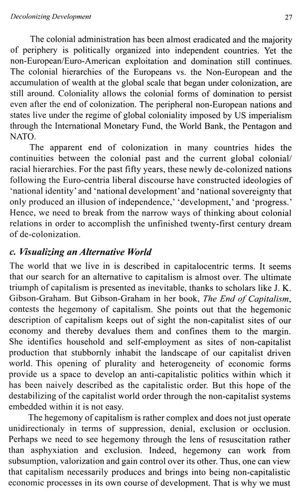 The next paper by Victor Ferrão, Former Dean of Philosophy, Rachol Seminary, Goa, problematizes the notion, as well as the process, of development so that we can arrive at profound and authentic alternatives to contemporary understandings. Here the author strives to be attentive to the politics of one-sided, imperial development, which could be equated to colonization, or crony capitalism. Development springs from a power relation between the developed (or over-developed) and the under-developed. Uneven power relationships and authority are growing all over the globe in the name of development. Indeed, under-development is produced by the discourses and the practices of development. As expanding development has become a power that has global sway, a political decolonization of the same has become an urgent necessity. Indeed, our task has become urgent because the term development, intertwined with crony capitalism, has come to connote a 'good life that is seen as logically desirable and naturally innocent. In fact, the lines of separation between crony capitalism and lopsided development are blurred, and so we are accustomed to treat capitalism itself as development. In order to deconstruct this condition, we shall try to take up a historico-graphical approach and arrive at an understanding of the processes that have allowed us to view crony capitalism as development. This condition, the author notes, is neither transhistorical nor trans-spatial. It is, in fact, both time and space specific. Its roots have spread from what we regard as a modernity/coloniality symbiosis. The world that is under the spell of capitalist driven development is divided into different spatial units separated by different stages of development.