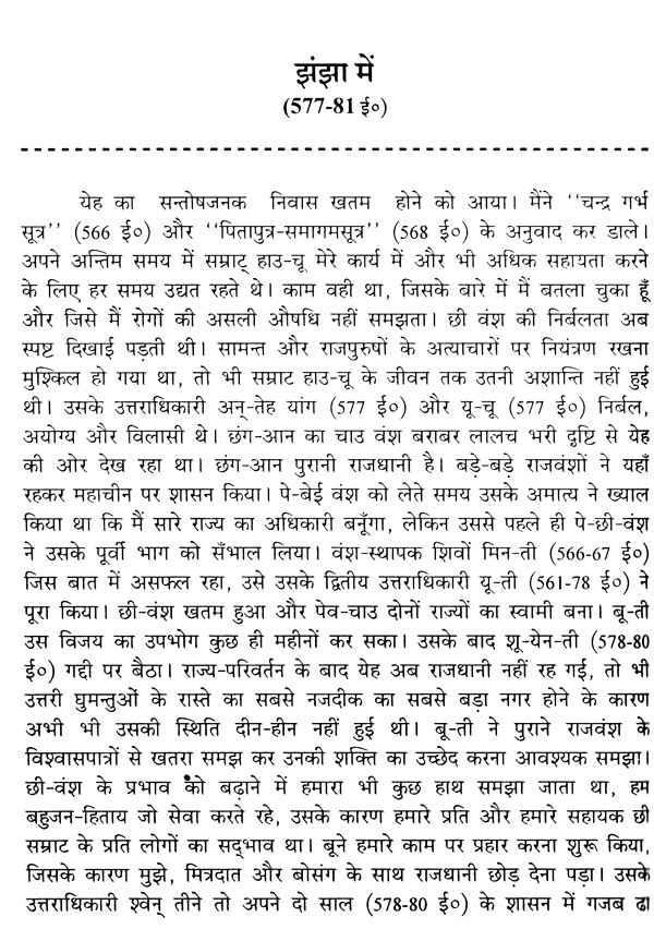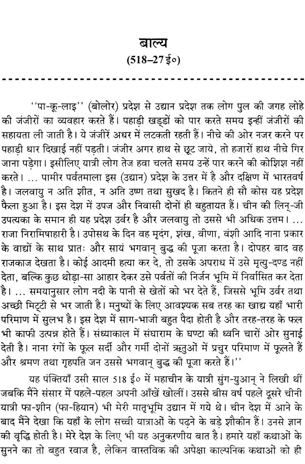 "नरेन्द्रयश" कोई कल्पित पात्र नहीं है। वह हमारे ही देश के- अब पश्चिमी पाकिस्तान के स्वात (उद्यान) की भूमि में 518 ई० में पैदा हुए थे। उन्होंने भिक्षु बनने के बाद भारत, सिंहल, मध्य एशिया, घुमन्तुओं की भूमि और चीन में विचरण किया था।