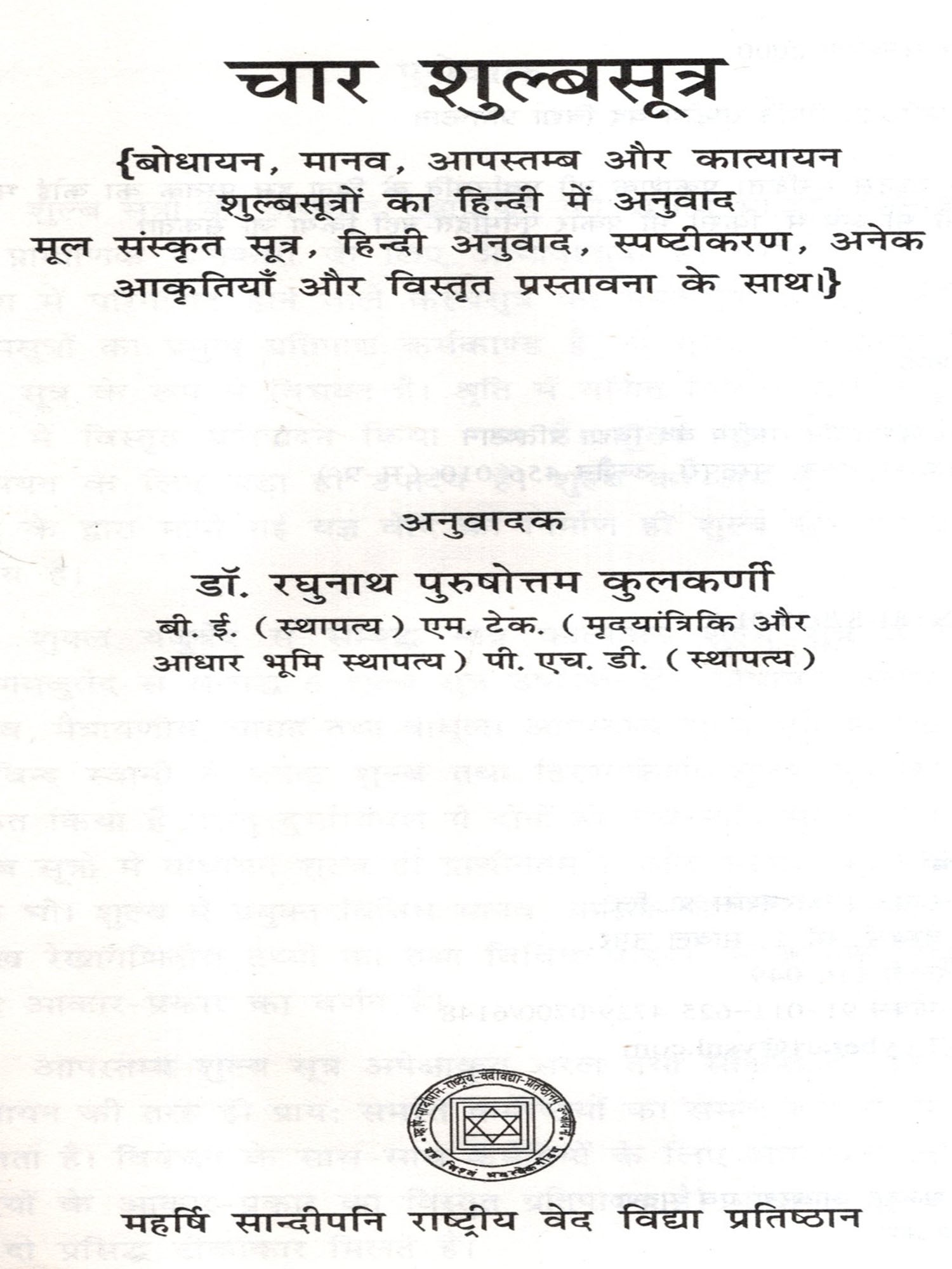 चार शुल्बसूत्र: The Four Shulbasutras- Translation of the Bodhayana, Manava, Apasthamba and Katyayana Shulbasutras into Hindi