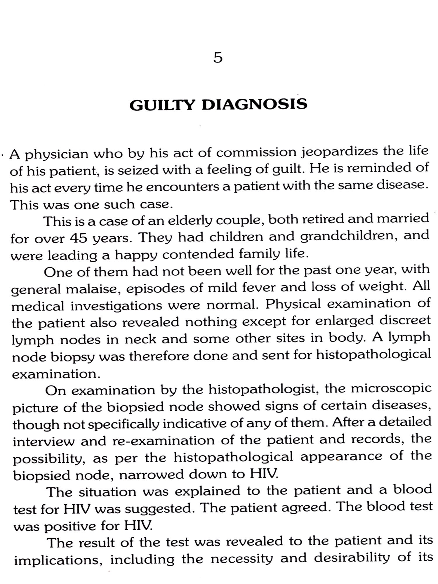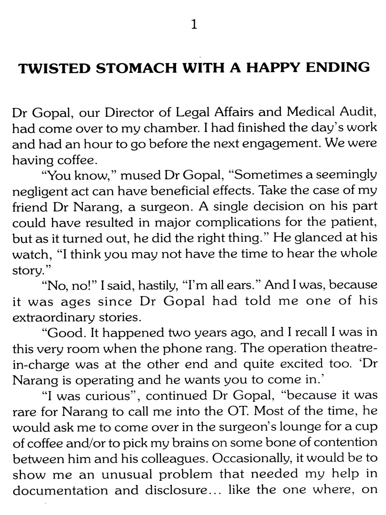 To physicians the stories provide contextual appreciation of law and ethics, and to lawyers the specific medical context in a case. To the patient and lay person the stories provide knowledge for proper understanding of a very complex situation. Consideration of each other's concern and constraints, it is hoped, will ease the apprehensions and help restore mutual trust. These knowledge based narrations from the field of modern medicine will be of interest to all.