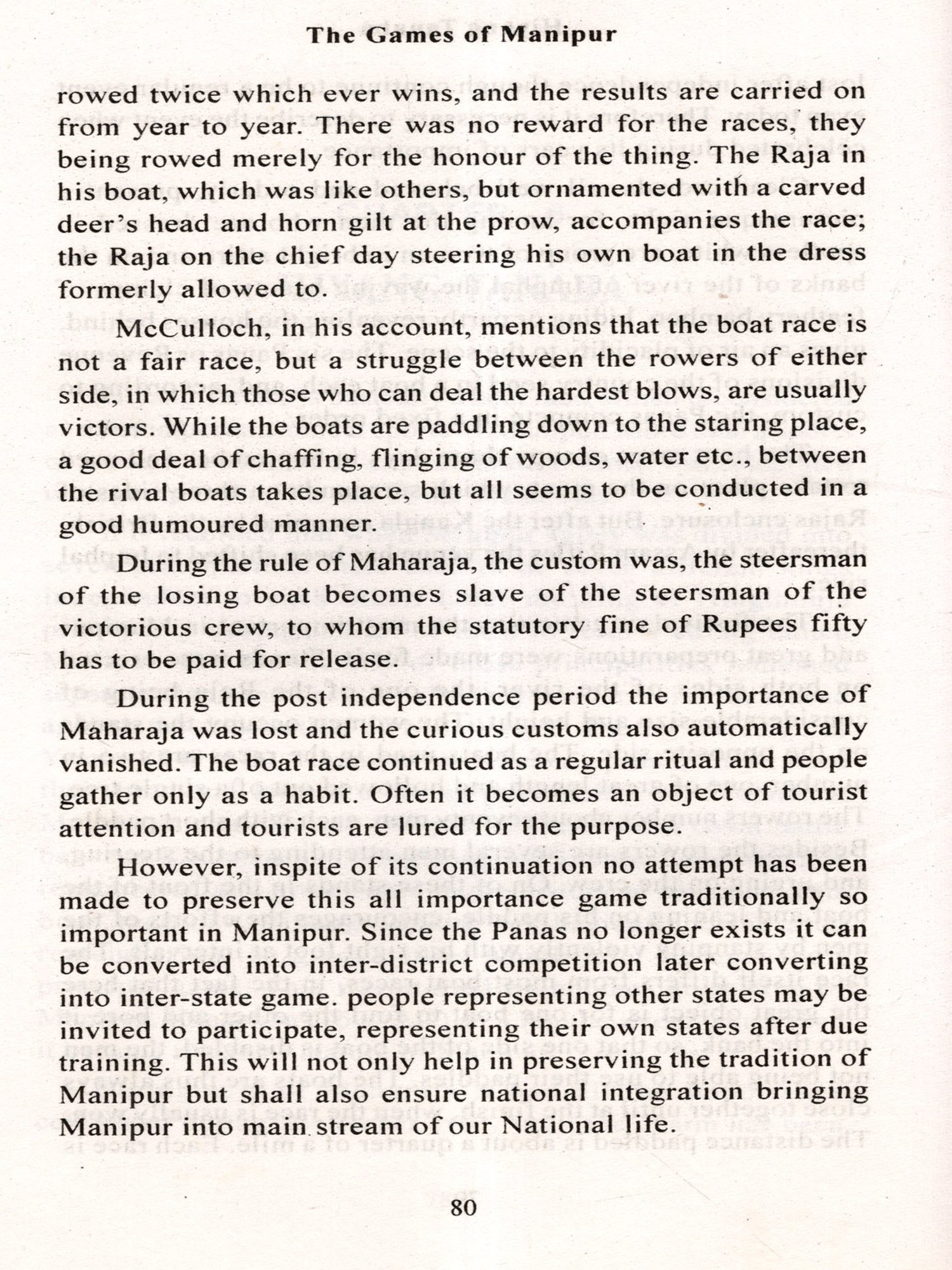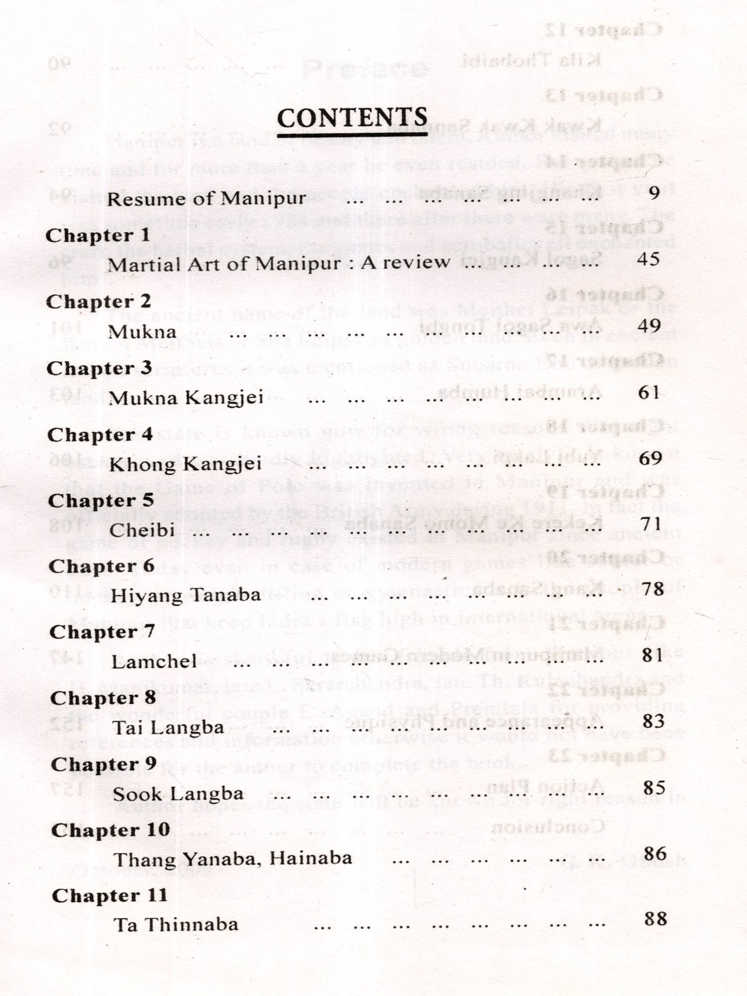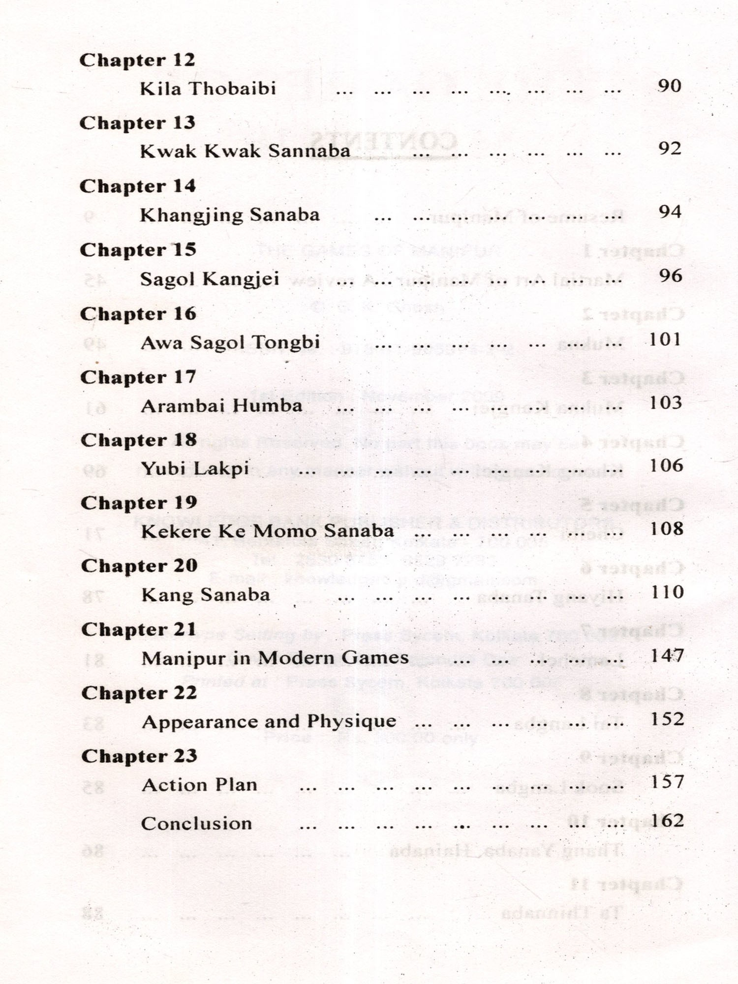 Games are played as pleasure, to ensure better physique to participants and of course for entertainment. Various games were developed round the globe which varied up to certain proportion depending on environmental and social situations. Manipur is a tiny land situated at North Eastern corner of India which was subject to influence from various streams of human races thus formed an unique culture. It has influence on their games and sports too. The book deals with traditional games of Manipur. Since the games were developed during various periods of history they have historical perspective. Therefore history of Manipur has been discussed as introduction. If Manipur is taken from various races, it is also given too. The game of polo originated in Manipur which has been globalised. Contribution of Manipur in modern game is also discussed in brief. It is expected that the book shall be of great help to Scholars, Social Scientists and planners so that these games may be globalised to give us a happy world.