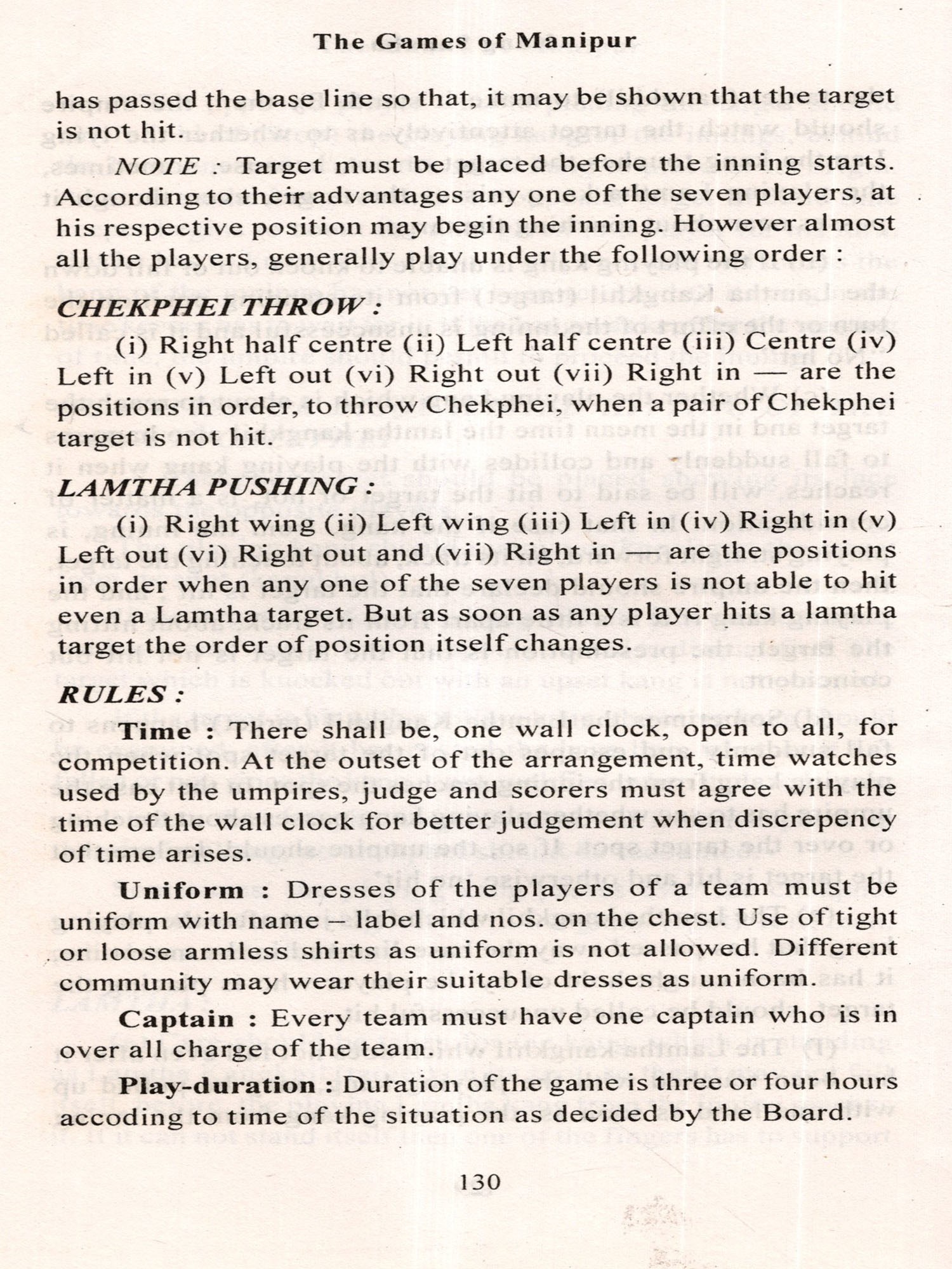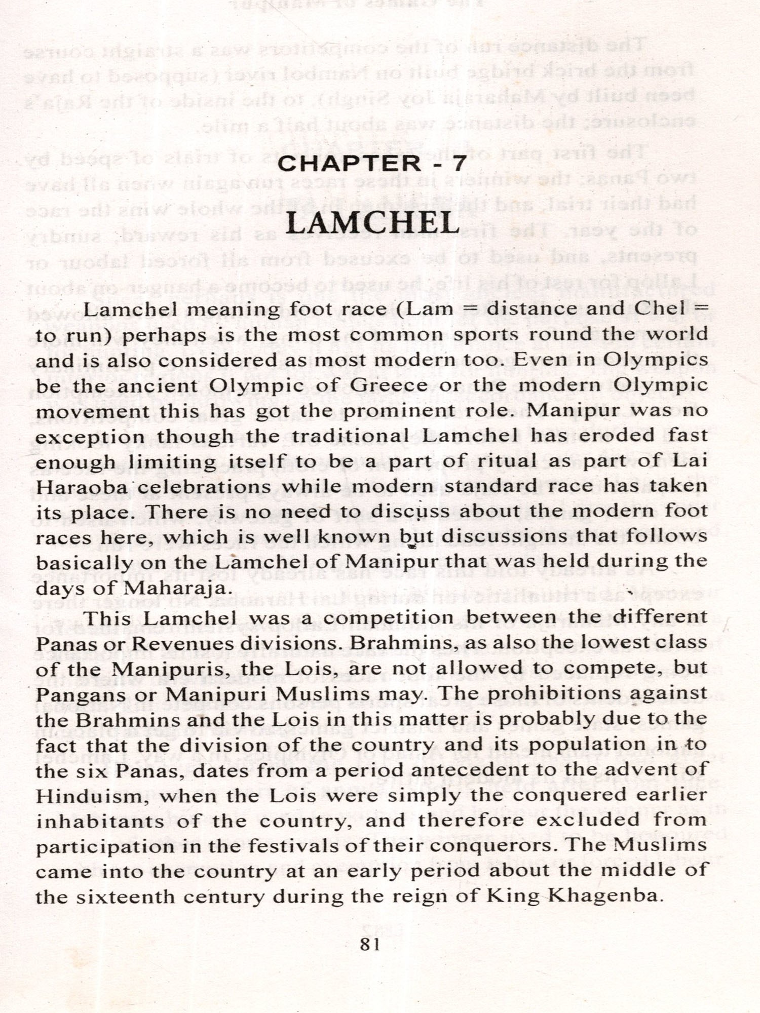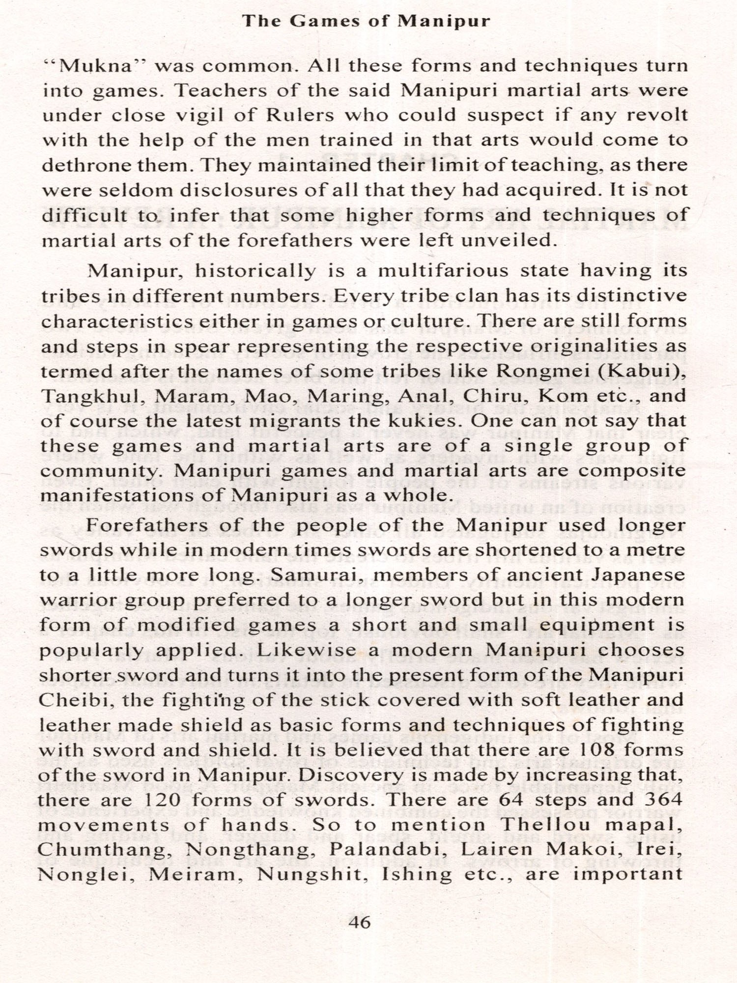 Games are played as pleasure, to ensure better physique to participants and of course for entertainment. Various games were developed round the globe which varied up to certain proportion depending on environmental and social situations. Manipur is a tiny land situated at North Eastern corner of India which was subject to influence from various streams of human races thus formed an unique culture. It has influence on their games and sports too. The book deals with traditional games of Manipur. Since the games were developed during various periods of history they have historical perspective. Therefore history of Manipur has been discussed as introduction. If Manipur is taken from various races, it is also given too. The game of polo originated in Manipur which has been globalised. Contribution of Manipur in modern game is also discussed in brief. It is expected that the book shall be of great help to Scholars, Social Scientists and planners so that these games may be globalised to give us a happy world.