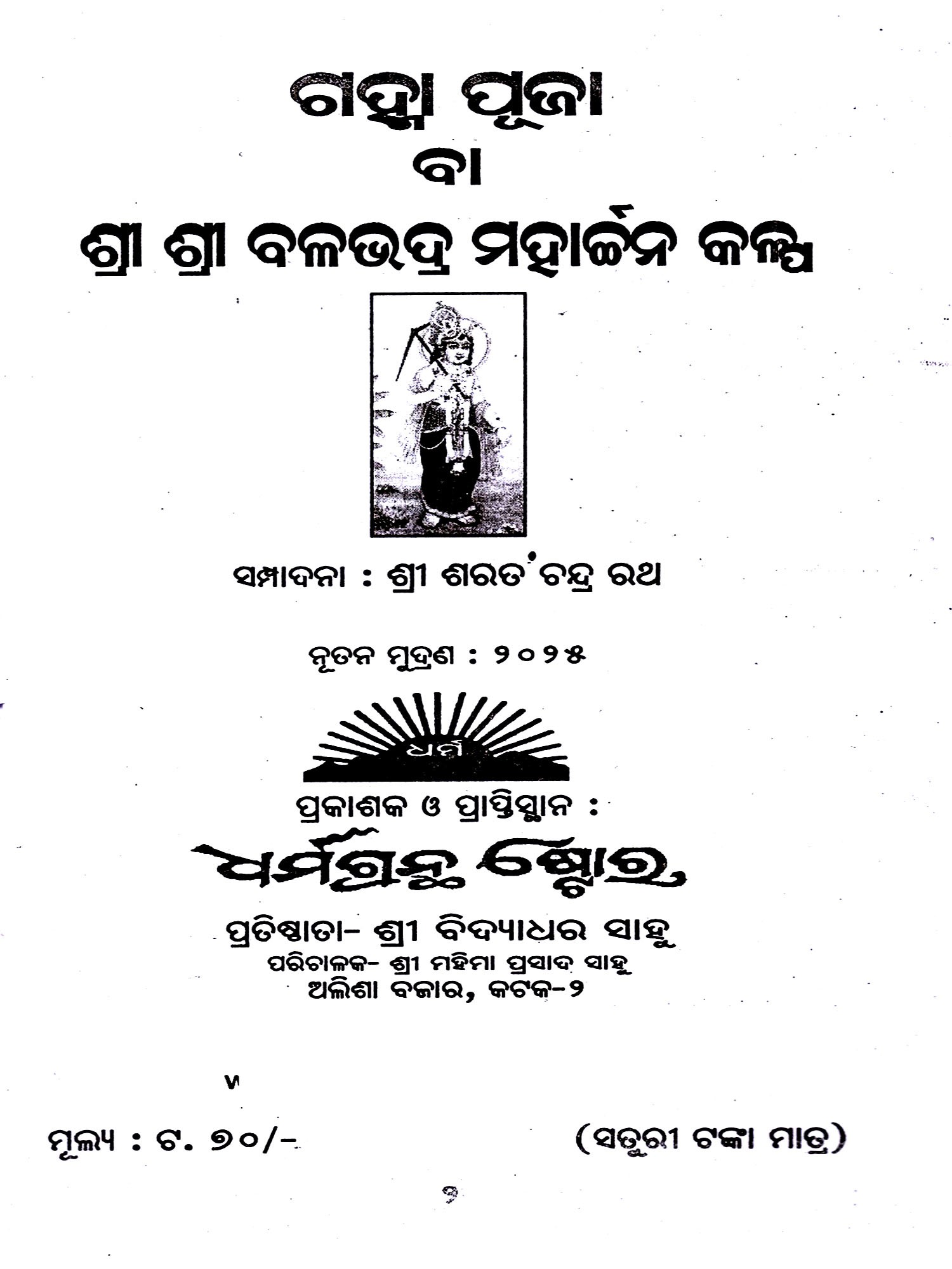 ଶ୍ରୀବଳଭଦ୍ର ସହସ୍ରନାମସ୍ତୋତ୍ରମ୍ ପୂଜାବିଧୂ ସହିତ: Sri Balbhadra Sahasranam Stotram With Puja Vidhi (Oriya)