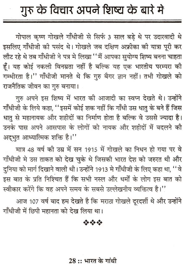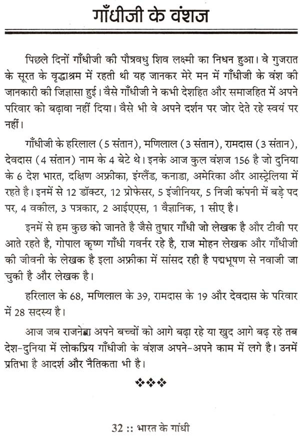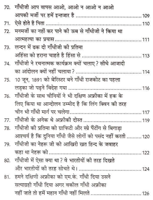 यह बात मेरी इस पुस्तक पर शत-प्रतिशत लागू होती हैं। आज के वातावरण में गाँधीजी के कार्य, विचार और जीवन पर लिखते हुए मुझे आनन्द की प्राप्ति हुई और उससे ज्यादा खुशी पढ़ते हुए हुई।