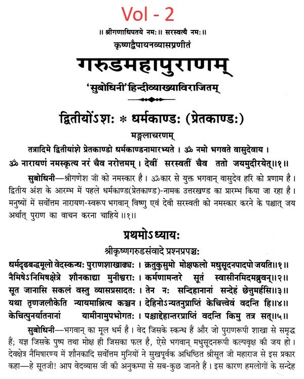 गरुडमहापुराणम्- Garuda Mahapurana of Krishnadvaipayan Vyas: Part I: Achaar-Kand and Part II: Preta & Brahma-Kand (Set of 2 Volumes)