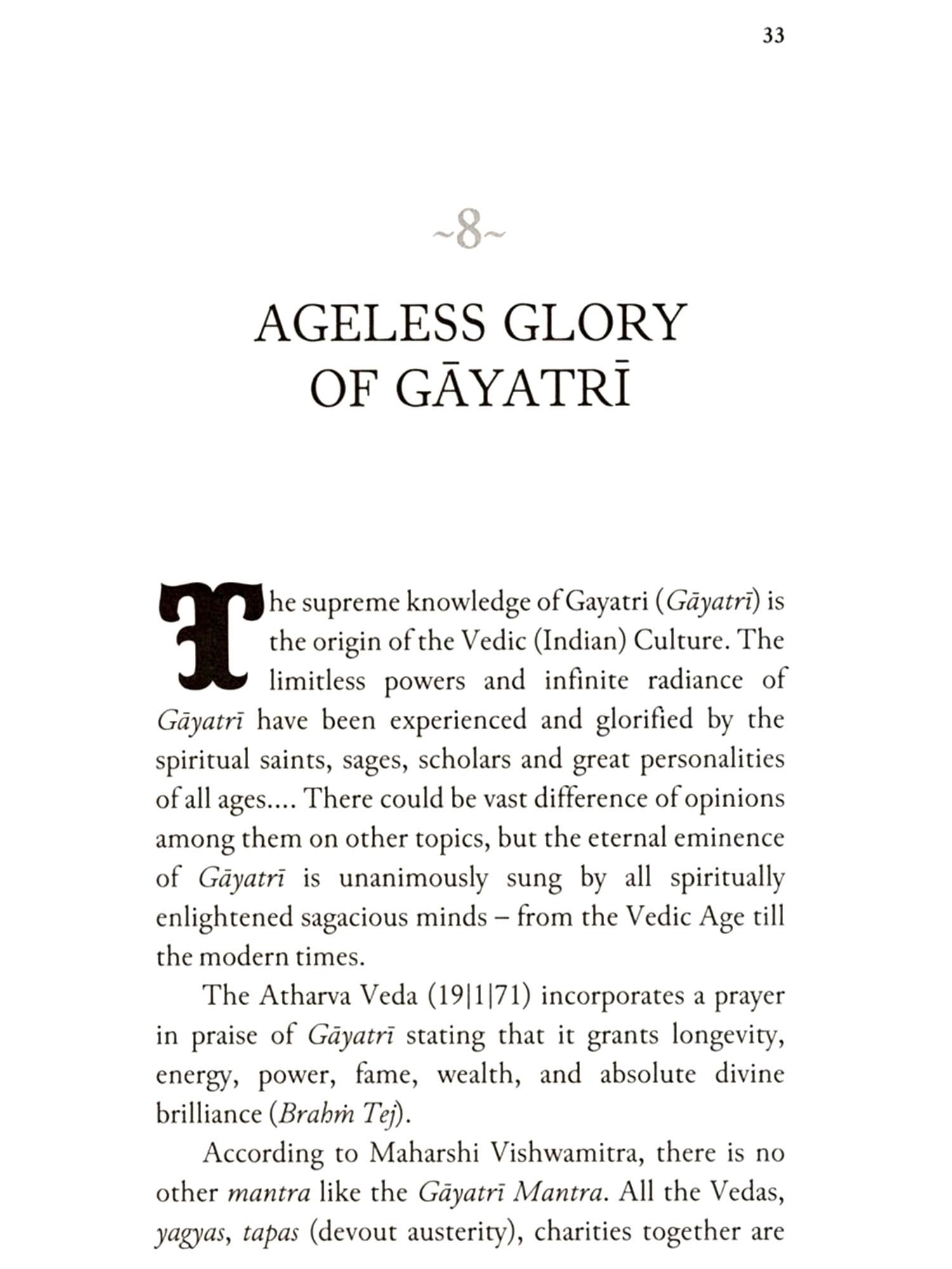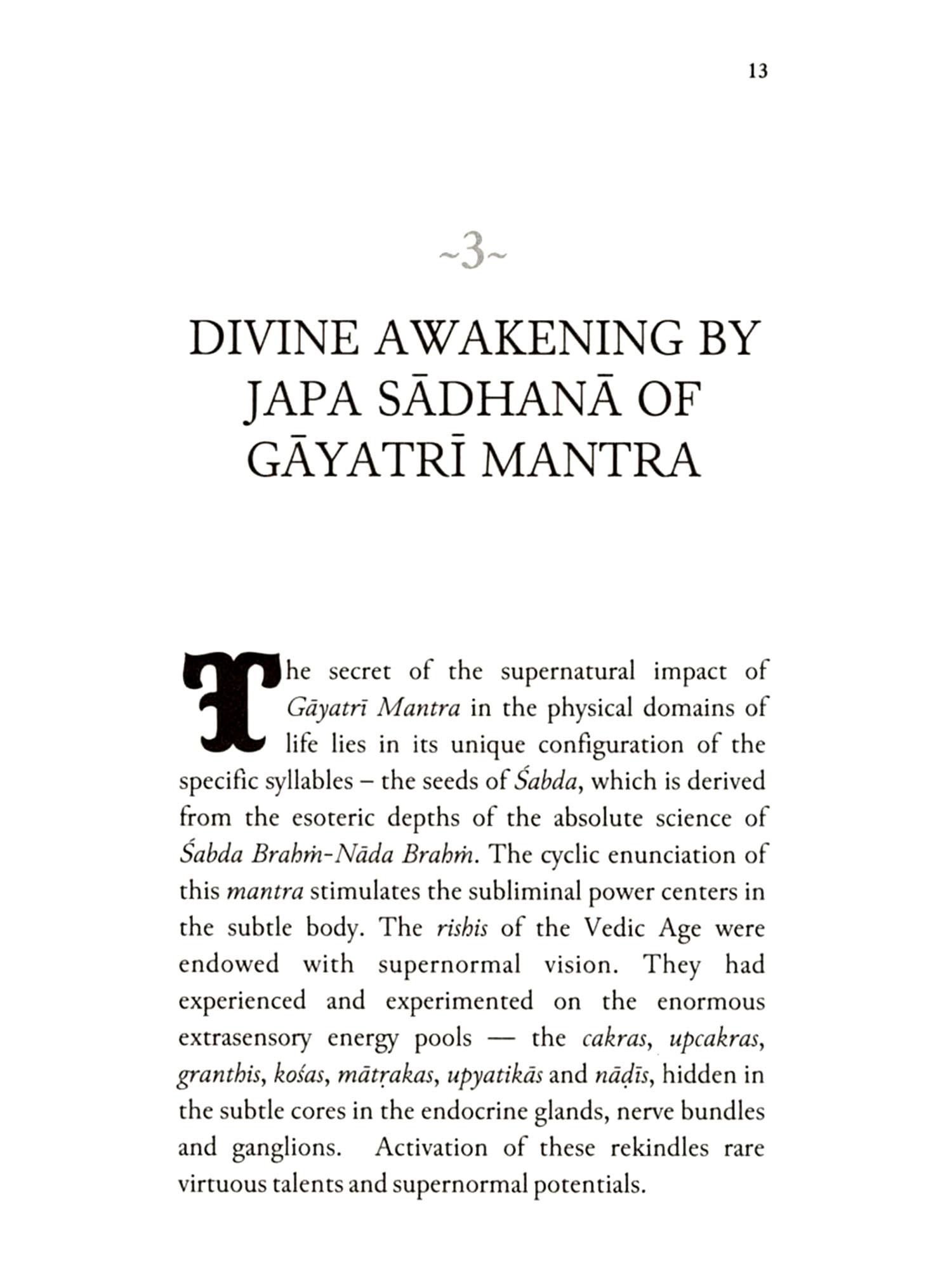 This book lucidly describes the method of Gayatri Sadhana with practical guidance and necessary explanations, with due consideration of the prevailing misconceptions and doubts of the common readers and inquisitiveness of the spiritual seekers. Excellent introductory information on the science and philosophy of the (Vedic) mantras in general and the Gayatri Mantra in particular is given in this small book for the potential researchers.