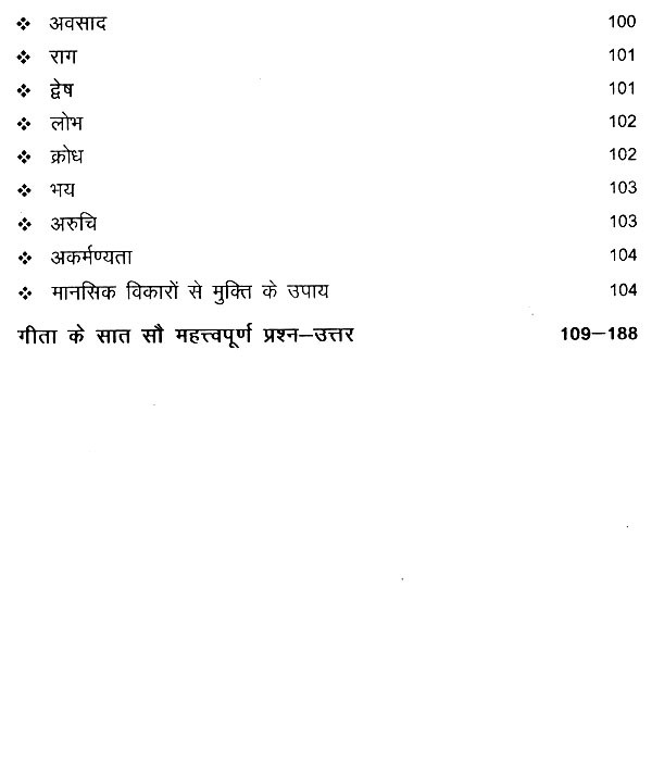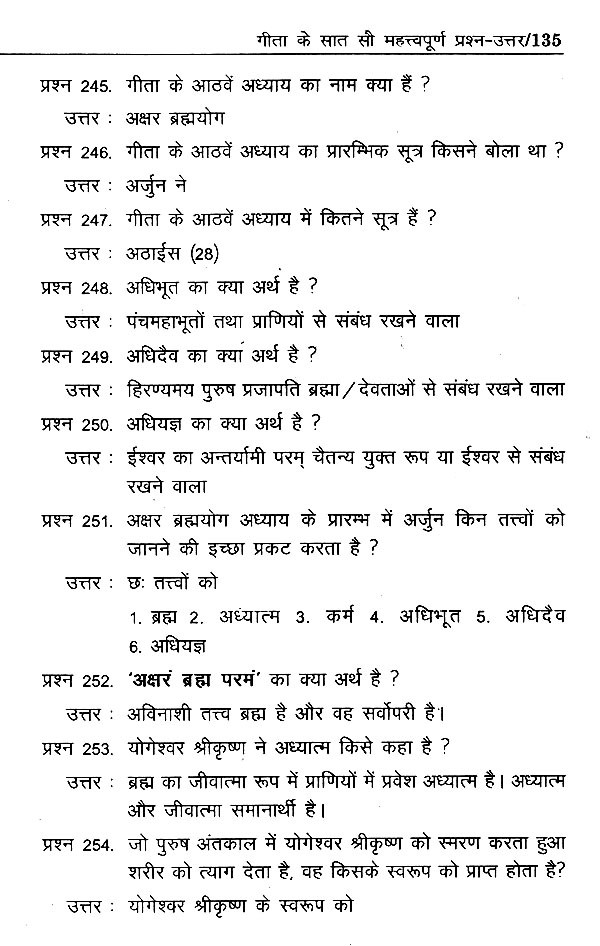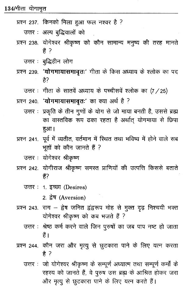 योग संबंधी प्रतियोगी परीक्षाओं एवं स्वयं के आंकलन हेतु गीता के अठारह अध्यायों के महत्त्वपूर्ण सात-सौ प्रश्न-उत्तरों का समावेश किया गया है।