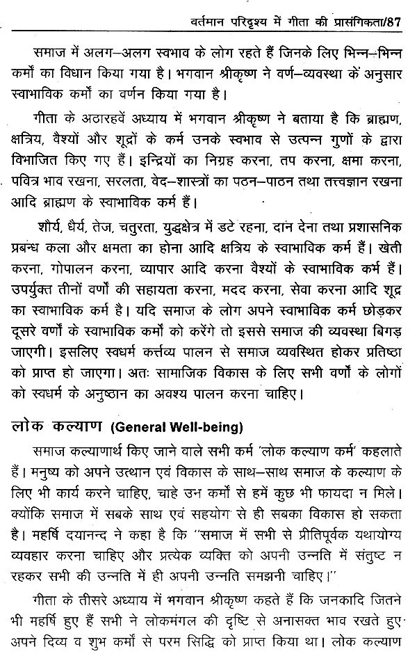 तीसरा अध्याय वर्तमान समय में गीता की प्रासंगिकता को दर्शाता है। इसमें गीता की आधुनिक जीवन में क्या उपयोगिता है ? गीता पढ़ने से हमें क्या लाभ होने वाला है? क्या गीता हमारे सभी दुःखों को दूर कर सकती है? आदि सभी प्रश्नों के उत्तर इस अध्याय में मिलते हैं। इसमें मुख्य रूप से बताया गया है कि गीता की शिक्षाओं की हमारे व्यक्तिगत जीवन, सामाजिक जीवन और आध्यात्मिक जीवन में उपयोगिता है।