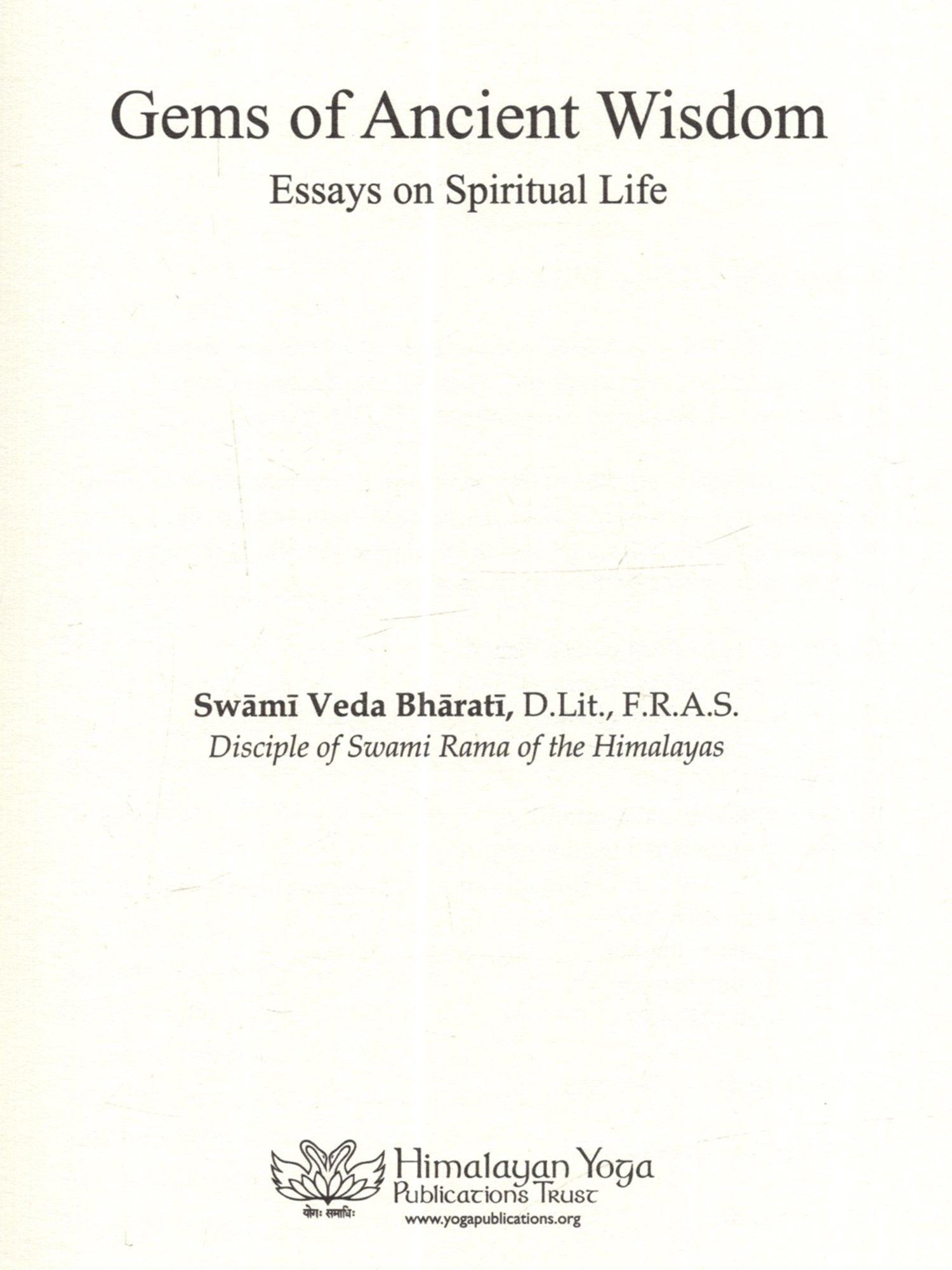 GEMS OF ANCIENT WISDOM: ESSAYS ON SPIRITUAL LIFE Swāmī Veda Bharati (1933-2015), beloved by thousands of spiritual seekers and many others around the world, defies any attempts at an introduction. A spiritual giant, a peacemaker, a poet, a writer, a Sanskrit scholar, an author and a teacher - these are only a few of the innumerable, often unfathomable, facets to this softly spoken, towering persona. Swāmī Veda touched the lives of many. His captivating aura effortlessly drew countless numbers of those on the spiritual path who yearned for knowledge, who sought answers and comfort. Many simply wished to be in his luminous presence. The reverberating gentle tones, his radiant smile and subtle humour embraced all without distinction. "Let every person feel loved" was the message that was consistently demonstrated. Swāmī Veda was an embodiment of perfect knowledge and perfect wisdom expressed in the form of purest love. The Gems of Ancient Wisdom series is a reflection of this love expressed in simple words that manifest deep wisdom.