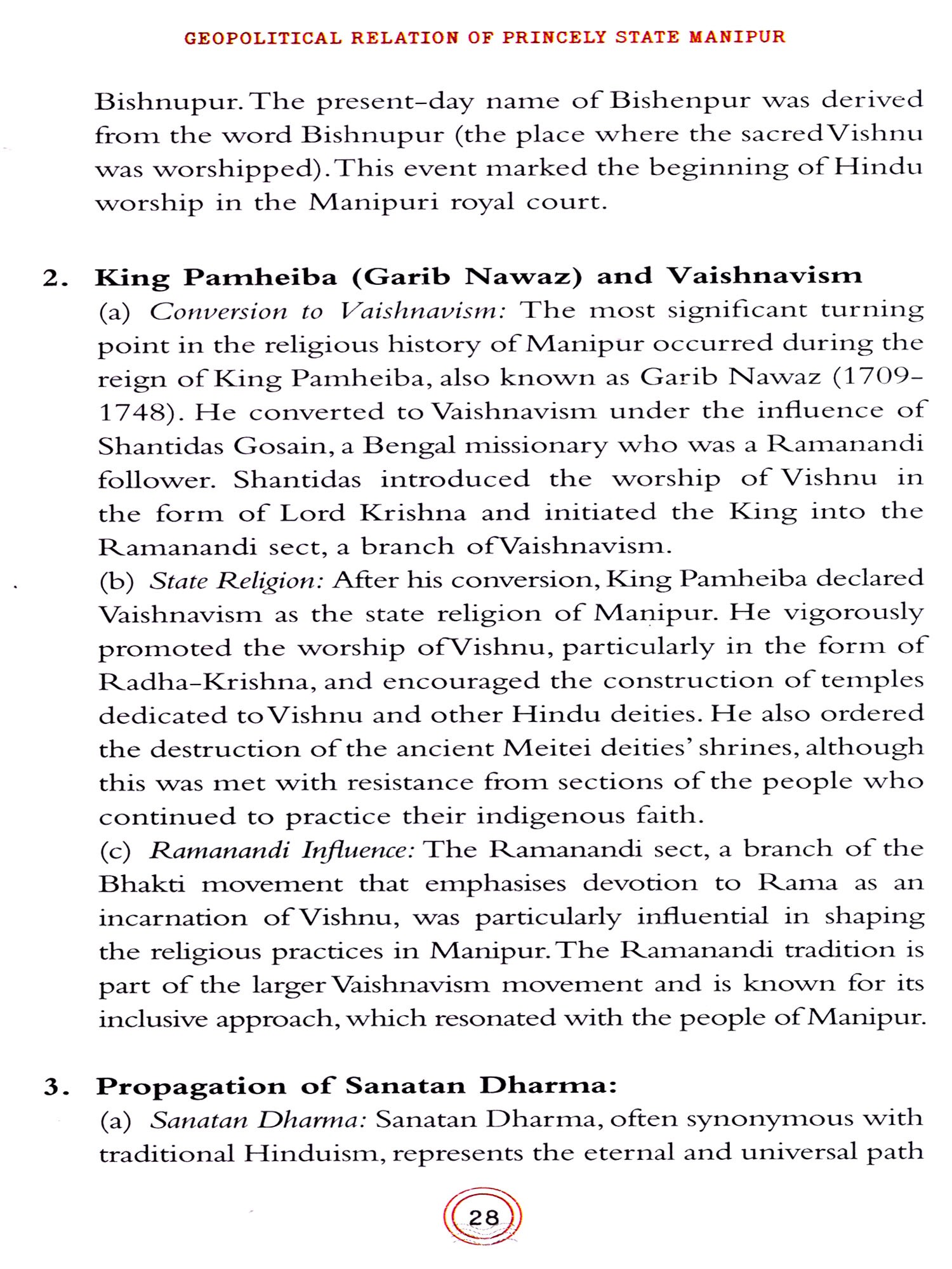 The Princely State of Manipur, nestled in the north-eastern frontier of India, has a long and complex history shaped by its geopolitical location. Situated between South Asia and Southeast Asia, Manipur served as a cultural and political bridge between various civilisations. Its strategic position on the trade routes connecting the Indian subcontinent with Burma (Myanmar) and beyond made it a site of significant interaction, conflict, and cultural exchanges throughout history.