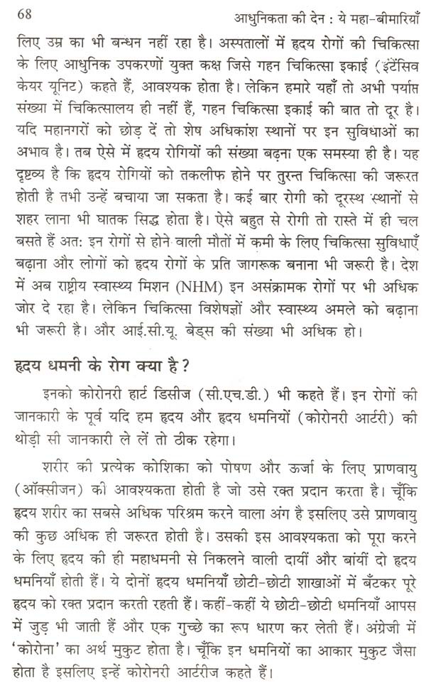 मैंने पुस्तक को तीन भागों में बाँटा है। प्रथम भाग में अक्सर हो जाने वाली असंक्रामक बीमारियाँ जैसे मधुमेह, उच्च रक्तचाप, हृदयरोग, मस्तिष्काघात और पक्षाघात एवं गुर्दो की अक्षमता को लिया है तथा द्वितीय भाग में इन रोगों की जड़ मोटापा एवं उनके कारणों को लेते हुए कोलेस्टेरॉल (लिपिड्स) इत्यादि के बारे में विस्तार से बतलाया है। साथ ही बीमारियों में रोगियों का भोजन कैसा होना चाहिए, गंभीर बीमारियों के लक्षण क्या हैं तथा अधिक भोजन विटामिन्स के क्या खतरे हैं इत्यादि के बारे में भी बतलाया है। इसके अलावा खेलकर और व्यायाम तथा योग द्वारा भी इन खतरनाक रोगों और मोटापे से बचा जा सकता है, इन बातों को भी पुस्तक में उल्लेखित किया है। योग पर भी 21 पृष्ठों का तृतीय भाग है। मैं तो कहूंगा योग ही आधुनिक रोगों का सही जवाब है।