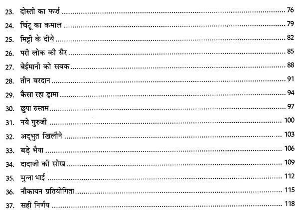 नकल करके या गलत तरीके से 'योग्य' बनने वालों के लिये 'मुन्ना भाई' शब्द प्रचलित हो गया है। बिना डॉक्टरी की पढ़ाई किये डॉक्टर बनने वाले कालू बंदर की कहानी 'मुन्ना भाई'। वह पीलू की सूझबूझ से पकड़ा जाता है। इन मुन्ना भाइयों से सावधानी की सीख मिलती है इस कहानी से। इसी तरह 'अद्भुत खिलौने' कहानी में रोचकता के साथ सीख है।