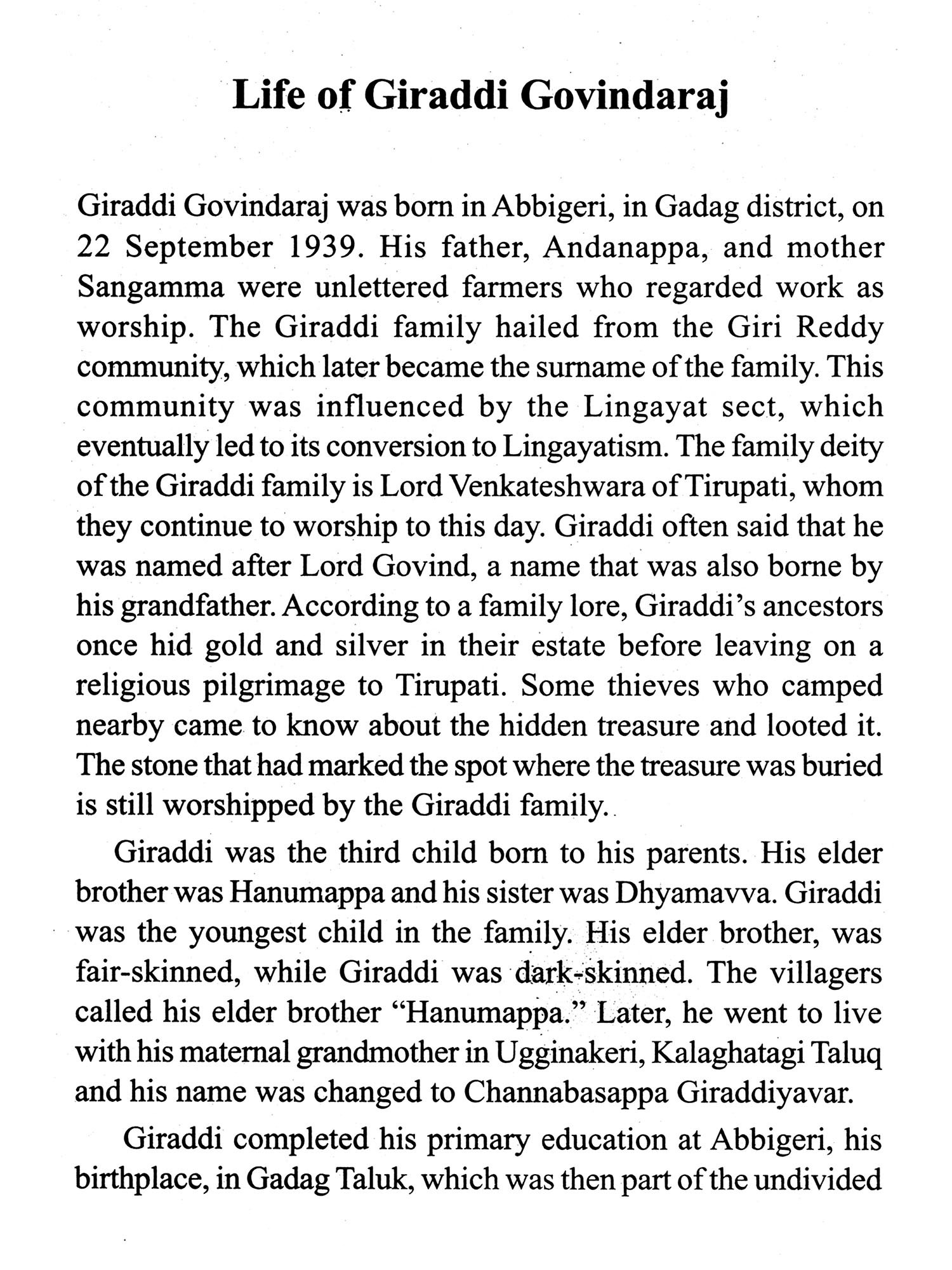 I hope that the monograph will not only help readers understand the life and works of Giraddi but also provide insight into the literary and cultural ethos that paved the way for the emergence of great writers like him, who created a new history in their respective fields.