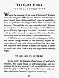 There are four types of yoga: Karma Yoga, Dhyana Yoga, Bhakti Yoga, and Jnana Yoga. In the Gita, each of the eighteen chapters is designat-ed as a specific yoga. But if we analyse the nature of each, we get the impression that each one of the eighteen chapters contains one or more of the four abovementioned yogas. In this book [see the "Contents"], Vishada Yoga, Bhakti Yoga, and Vibhuti Upasana Yoga fall within the category of "Bhakti Yoga"; Jnana Yoga, Daiva Asura Sam-pad Vibhaga Yoga, Guna Traya Vibhaga Yoga, Kshetra shetrajna Vijnana Yoga, and Jivanmukti Vijnana Yoga within "Jnana Yoga"; and the chapters Karma Yoga and Dhyana Yoga belong to those very respective topics, i.e. "Karma Yoga" and "Dhyana Yoga".