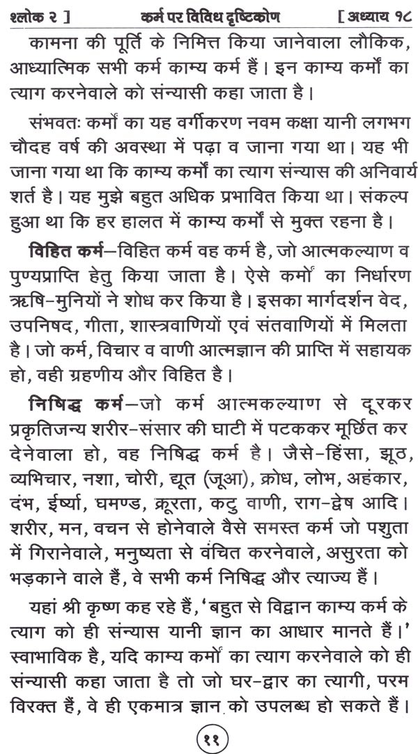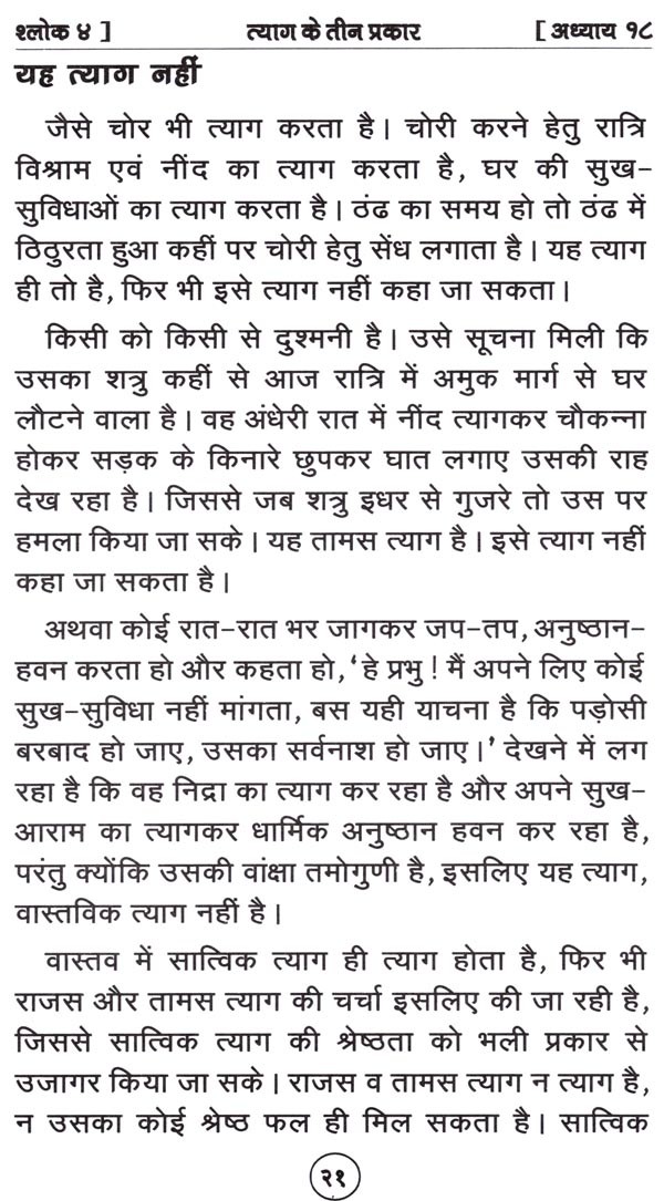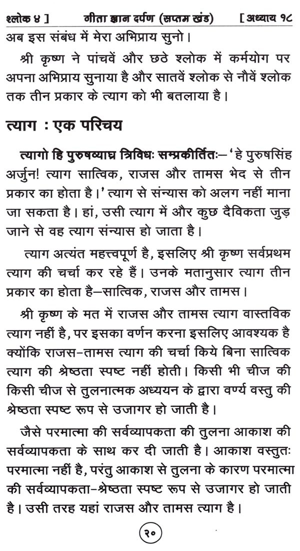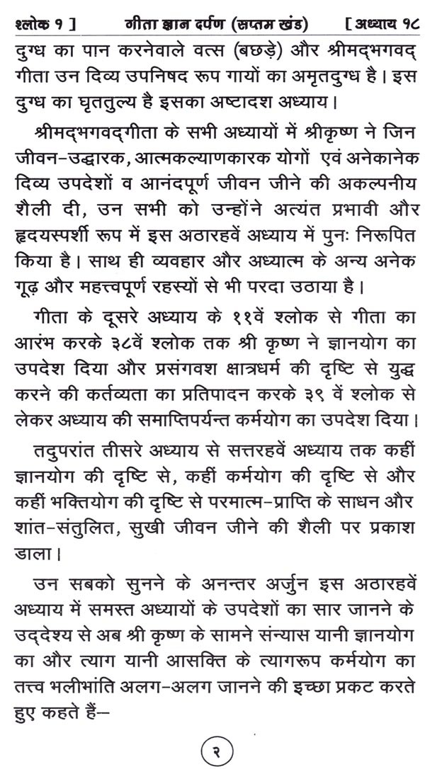 श्रीमद्भगवद् गीता किसी परिचय का मुंहताज नहीं है। यह सहस्त्राब्दियों से विश्व पटल पर चमकनेवाला वह सूर्य है, जो संसार के समस्त दर्शन व जीवन जीने की स्वस्थ शैली को प्रकाशित करता है, ऊर्जावान बनाता है और जीवन देता है। यह किसी मत -पंथ का बंध नहीं है, प्रत्युत सम्पूर्ण मानव समाज का मार्गदर्शक बंध है। महाभारत युद्ध के आरम्भ में अवसाद ग्रसित अर्जुन हाहाकार करते हुए कहता है - शिष्यस्तेऽहं शाधि मां त्वां प्रपन्नम् (गीता 2. 7)। अर्थात् 'हे प्रभु! मैं आपका शिष्य और शरणागत हूं। कृपया मुझे मार्ग दिखलाएं।' हताशा और निराशा से घिरे अर्जुन को श्री कृष्ण ने ज्ञानमृत की वह घुटी पिलाई कि अर्जुन हताशा और अवसाद की दलदल से निकलकर परम प्रमुदितता के साथ आत्मविश्वास से परिपूरित होकर कह उठा - नष्टो मोहः स्मृतिर्लब्धा त्वत्प्रसादान्मयाच्युत । स्थितोऽस्मि गतसन्देहः करिष्ये वचनं तव।। (गीता 18.73) अर्थात् 'मेरा मोह (अवसाद) नष्ट हो गया है। मैं पुनः आत्मस्मृति को उपलब्ध हो गया हूं। आपकी आज्ञा पालन हेतु मैं तत्पर हूं।' विषाद ग्रसित मानव समाज हेतु वही शाश्वत अमृतधारा श्रीमद् भगवद्गीता में प्रतिस्थापित है। आएं, हम सभी इस देव दुर्लभ अमृत का पान कर नैराश्य की दलदल से मुक्त होकर परम आनंद व परम शांति को उपलब्ध हों। <p>