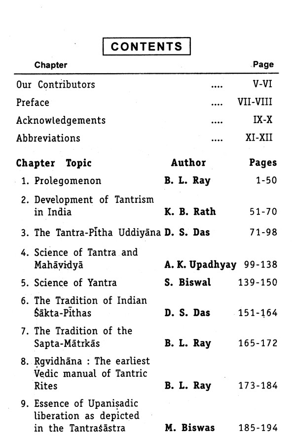 Any Sakta-pitha is the abode. of its prosiding Sakti, the female deity. In this respect, the present work includes studies on the Tantra-Pitha Uddiyana, the Sakta-Pithas of Indian and their rich Cultural traditions. The worship of the Sapta-Matrkas, the science of Tantra and Yantra are the other significant components of this work. Vodic tantrism, Upanisadic liberation and the very concept of creation have been treated here in a more concrete and coherent manner, coherence between the cult and the subject. Discussions on Tantric Yoga, Gayatri Mantra, Sri Gere and the mode of worship at Mx goddess Mahaked brightly into the notion cn Tantra and its practices. Other components of this study includes Tantric Buddhism, Tantric path followed by the Tibetans and the Tantric devotees of Assam. On the whole, the range of studies included here in this volume is widely expended over diverse fields of Tantra and its practices.