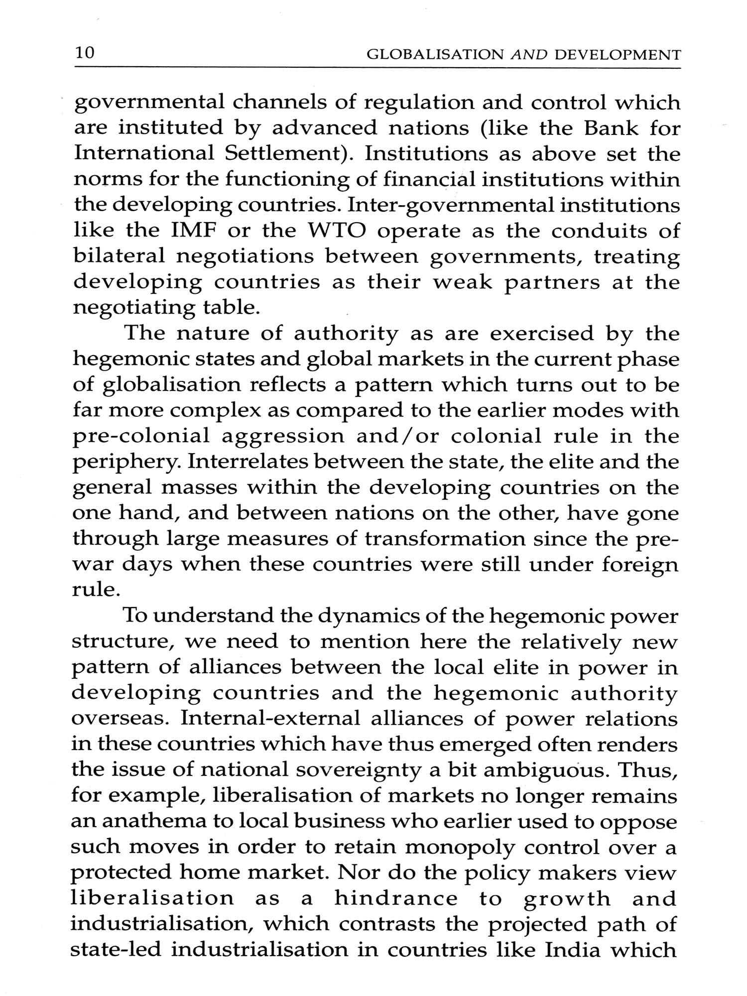 Introducing the present monograph, a yet another addition to the sprawling literature on globalisation, demands an explanation. We want to dwell on the debates relating to the implications of globalisation, and in particular, for people-oriented development. This is different from what generally is offered in the standard literature on the subject. Globalisation is often associated with the integration of the world, with the market breaking open the barriers across nation states in terms of flows of trade, finance, technology, knowledge, culture and even movements of people. It is supposed to be a leveller, with universal benefits, reaching out all countries and all their residents uniformly. Thus advances of technology, especially in the information and communication technology (ICT) sector, are considered to have facilitated the proliferation of the forces which have initiated globalisation in most parts of the world. Globalisation is supposed to work best with a minimalist role of the nation state vis-a-vis the waves of the global market.