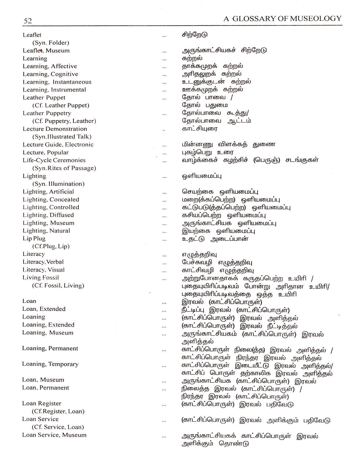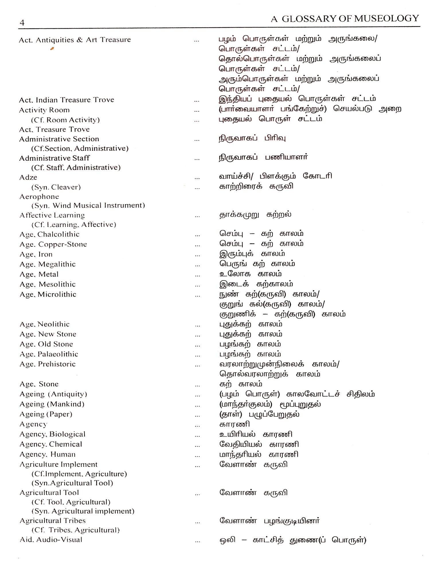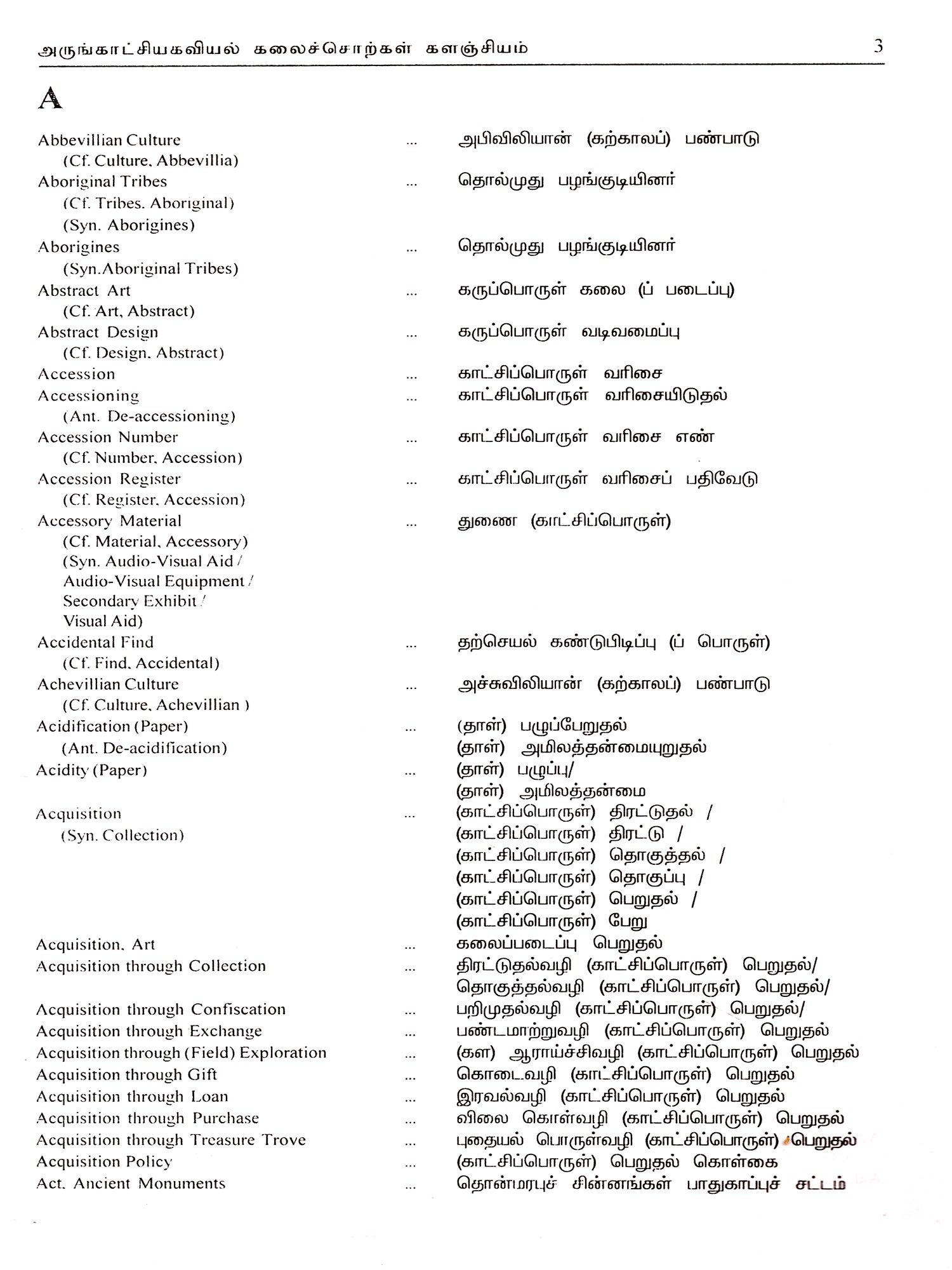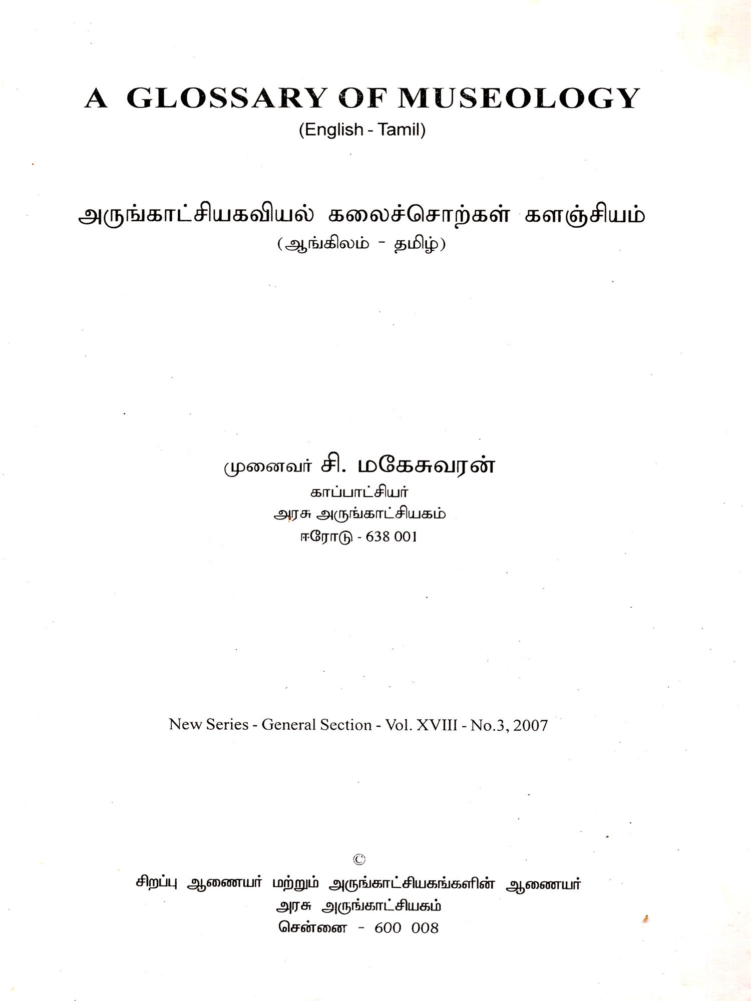 அருங்காட்சியகவியல் கலைச்சொற்கள் களஞ்சியம்: A Glossary of Museology- New Series - General Section - Vol. XVIII - No.3, 2007 (English - Tamil)