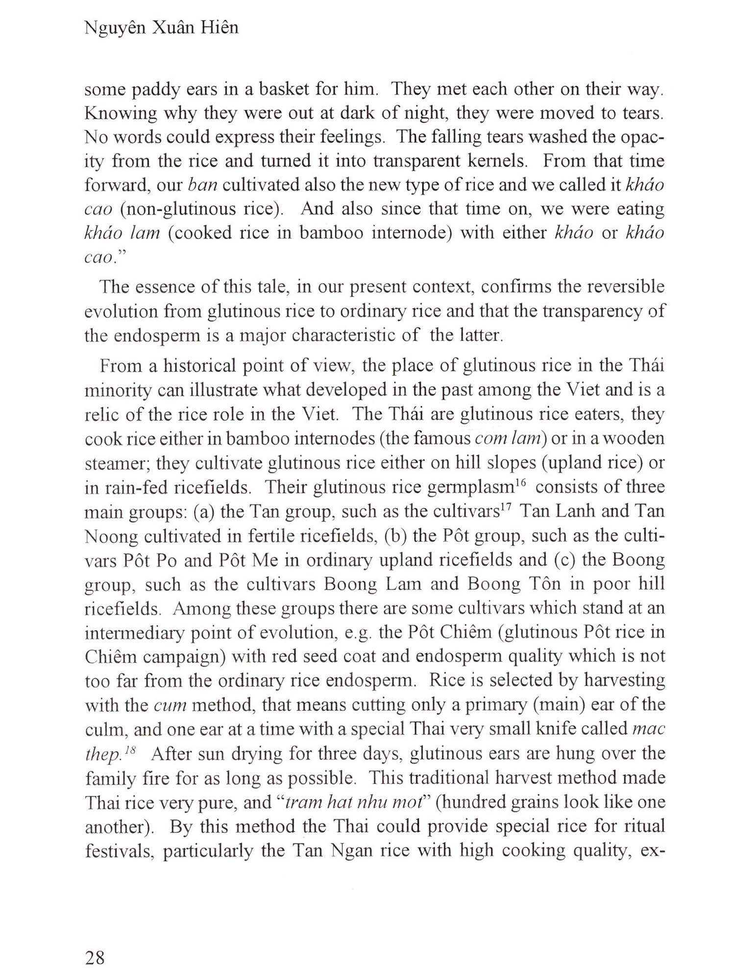 Nguyên Xuân Hiên, 1935, trained as a rice germplasm scientist, a historian, an information specialist; obtained his Ph.D. on genetics of rice; has ex-tensively researched and lectured on rice (genetics and ethnobotany) in various Asian and European countries. He is a member of the Center for Viet-namese Studies (USA, Holland, UK, Japan); Vietnamese Professionals Society (USA); Royal Institute of Linguistics & Anthropology, KITLV (Holland); and European Association for Southeast Asian Studies (Holland).
