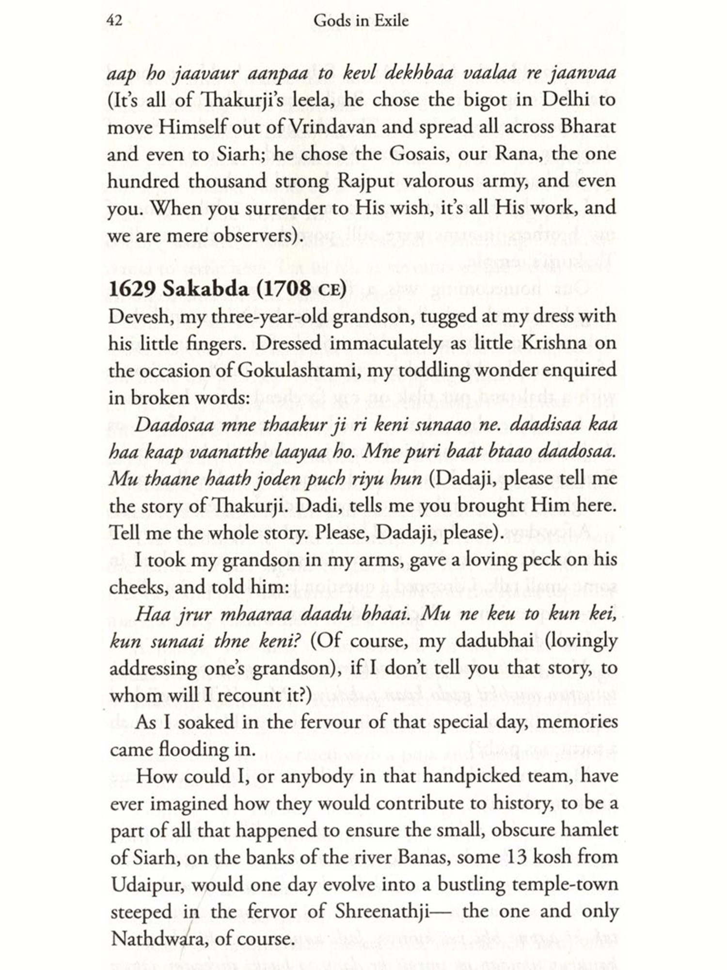 Amidst this gloom, we have accounts of the deities of Shrinathji and Govind Dev temples that lift our hearts and spirits. For example, the story of the deity of the Shrinathji temple is awe-inspiring. Fearing an imminent attack on the temple, the Shrinathji temple deity was taken from the Govardhan hills near Mathura to Agra, Kota, Kishangarh, and then to Udaipur.