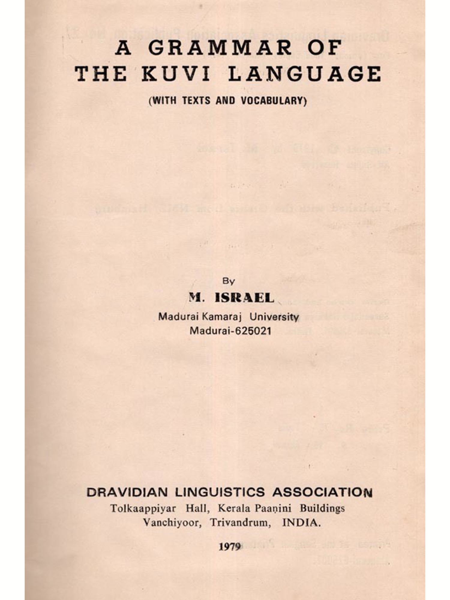 Name of the Language: Kuvi, one of the Dravidian languages, is neither enumerated in the Linguistic Survey of India nor dealt with as a dialect of Kuyi. There is no specimen of the language available in the volume.