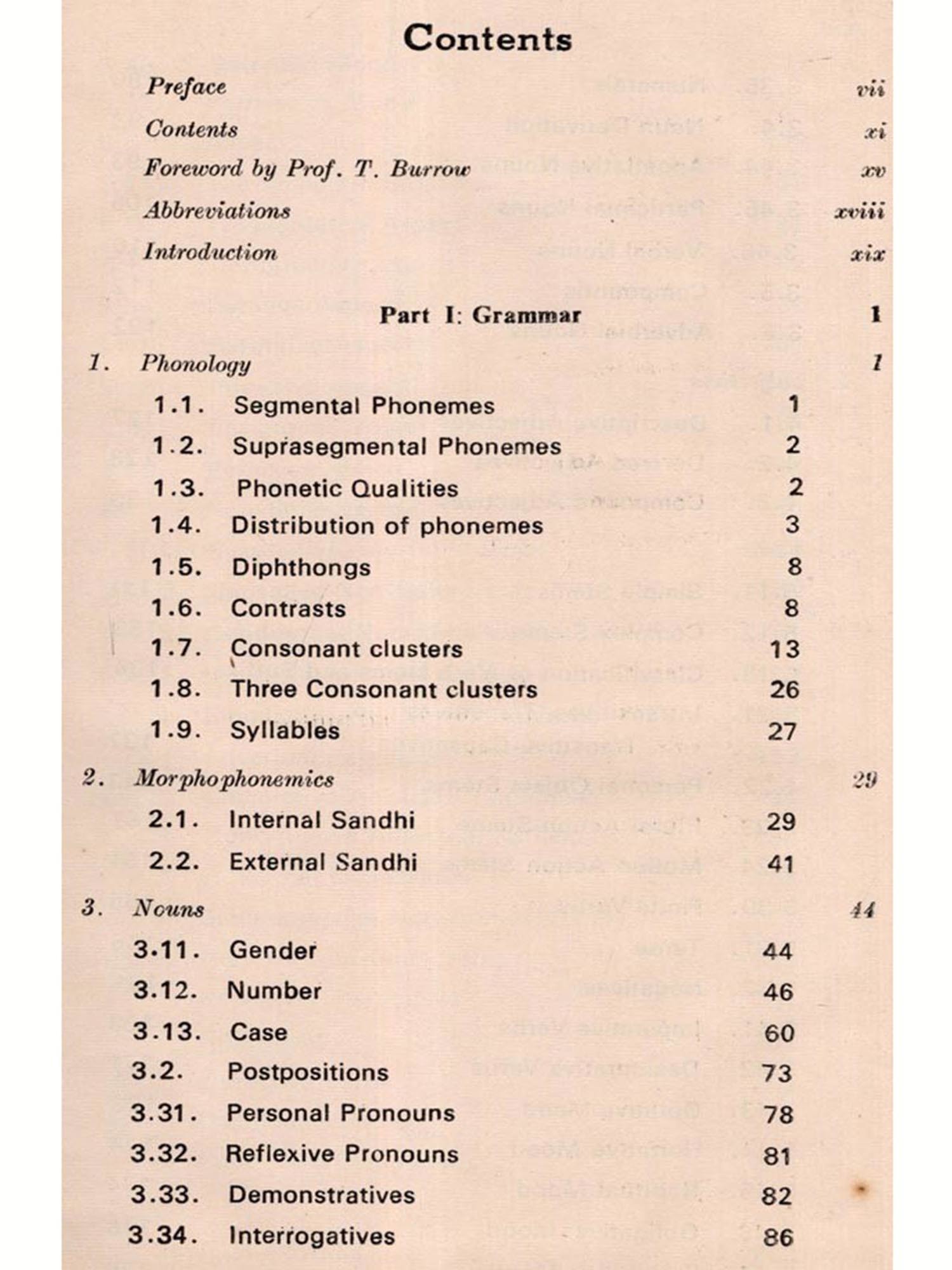Though it was, indeed, my intension to publish this work as early as in 1975, it could not be done due to various difficulties. However, I have a satisfaction at least to the extent that the long delay has helped me to clarify some of the problems of grammatical description for myself and thus to improve the quality of this work. Even then, I am fully aware of certain limitations, for which I owe an apology to the persons who are interested in the study of the language and to the Dravidian scholars.