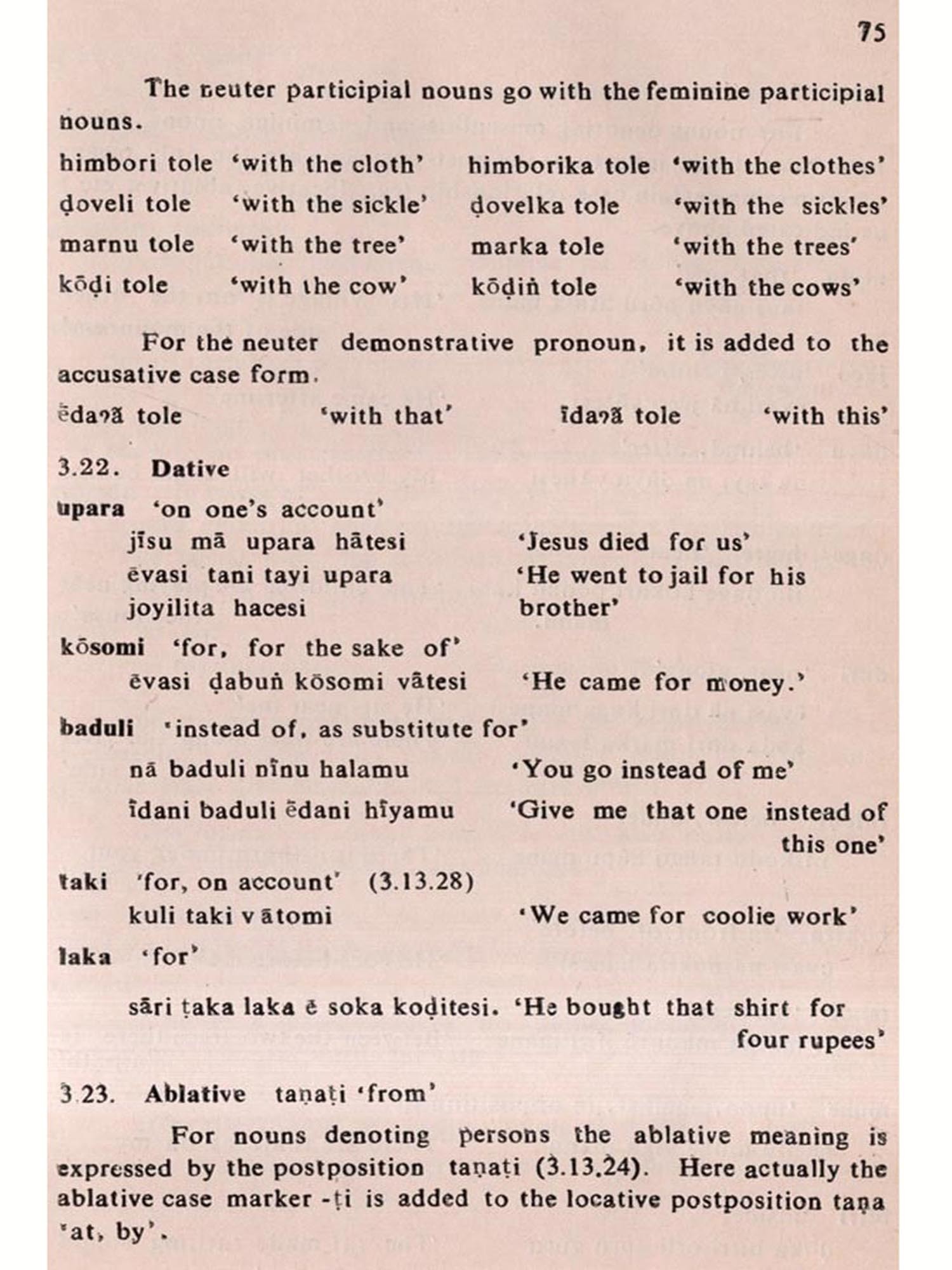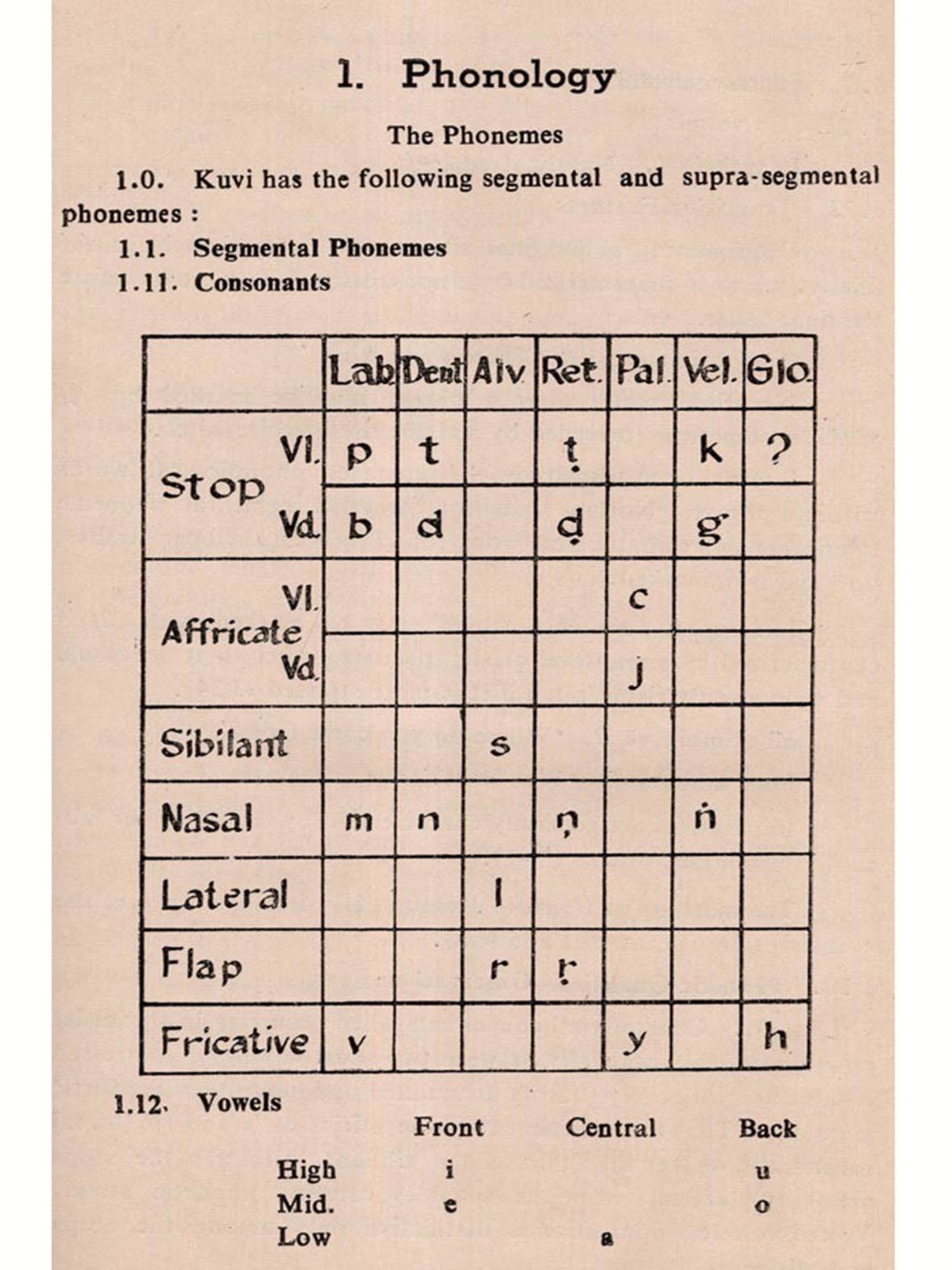 This monograph provides a large corpus which can be utilized to acquaint the developmental personnels, who are interested in the study of the language with a view to promote the social as well as spiritual life of Kond people who speak the Kuvi language.