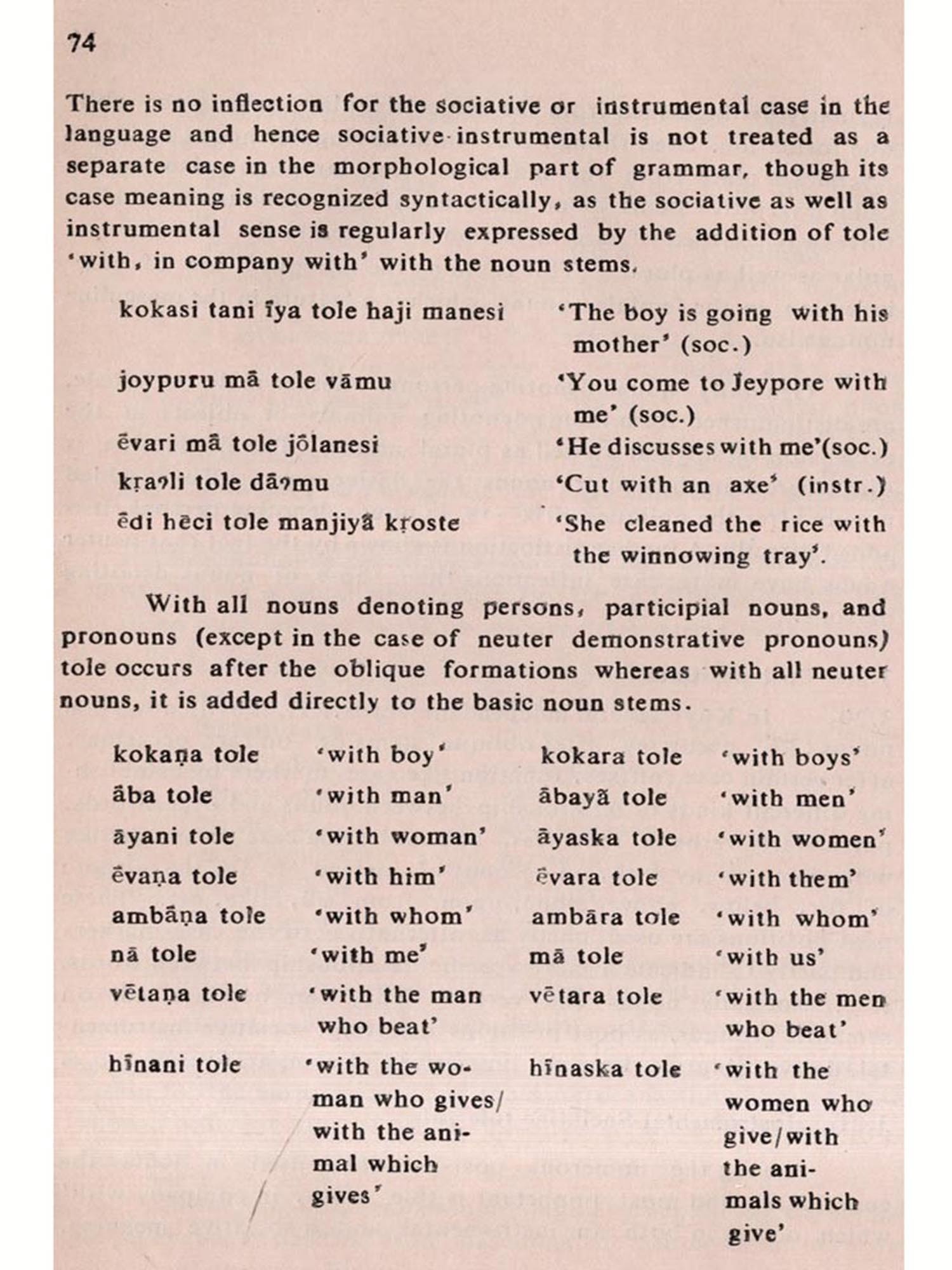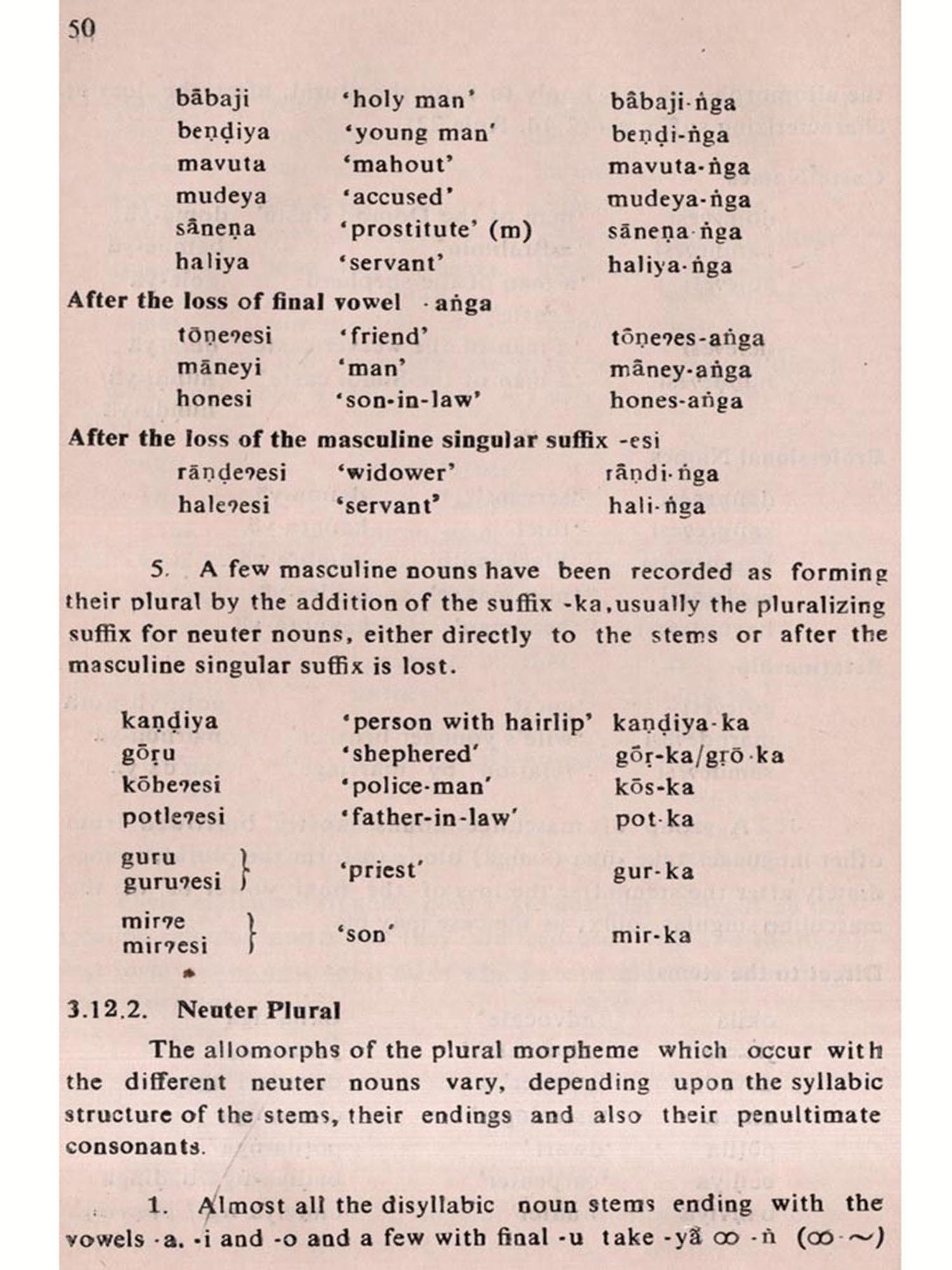 I am particularly indebted to my guide Dr. M. Varadarajan, formerly Vice-Chancellor of our University, to whose memory this work is dedicated as a humble token, for his personal interest and encouragement in my academic career. I express my grateful thanks to the authorities of the Madurai-Kamaraj University and to Dr. M. Shanmugham Pillai, Professor and Head of the Dept. of Tamil Studies for their kindness and encouragement. Dr.R. Kodandaraman deserves to be thanked for his constructive suggestions on the syntax part of the grammar and also Dr. M. Ramaswamy for preparing the map showing the distribution of the language.