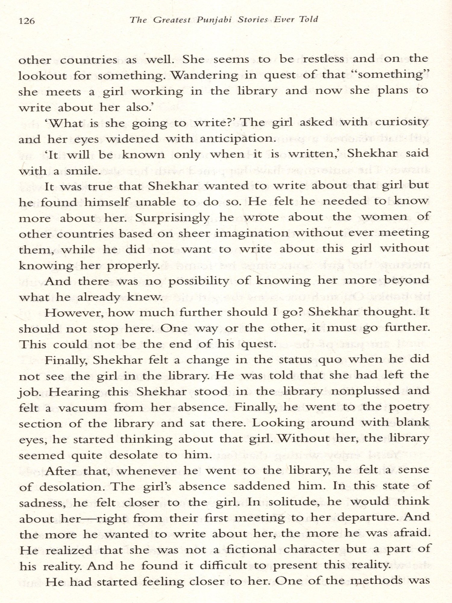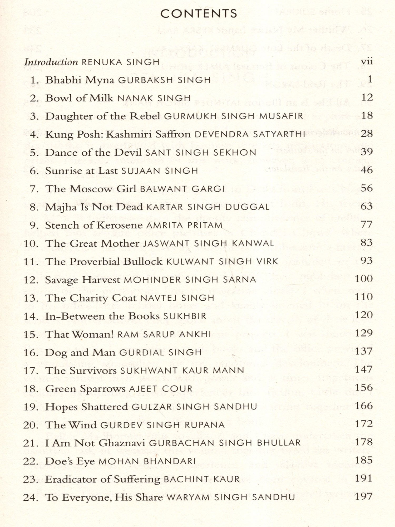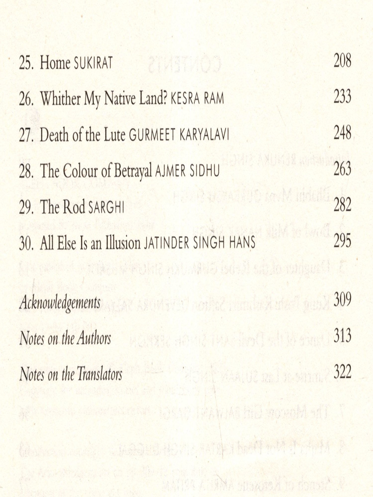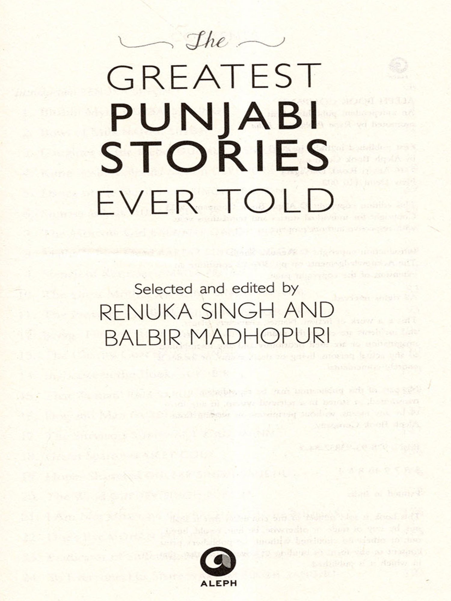 Balbir Madhopuri (my co-editor) and I have undertaken the daunting task of weaving this volume together based on writers' recommendations, aesthetic experience, and selective memory. Four generations of Punjabi writers have been covered in this collection. The exclusion of other popular and celebrated writers is by no means due to an underestimation of their capacity to reveal the hidden realities of human lives or of their contribution to the corpus of this genre. Rather, we hope that uninitiated readers will be able to sense the essence of the Punjabi literary imagination and Punjabiyat in the rural-urban continuum/divide presented in these stories. We invite you to this act of 'communion'. While Balbir and I may have different opinions about certain issues, methodologies, and literary agendas, this selection is all the more richer for it. Nevertheless, the biggest danger here is the loss of melody, meaning, energy, and spirit of language-a limitation we humbly accept. Needless to say, the churning of this collection has resulted from the availability of limited time and space.