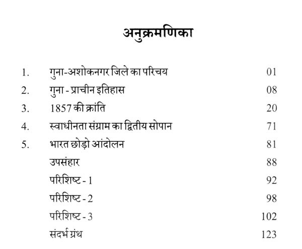 यह पुस्तक 'मध्यप्रदेश में स्वाधीनता संग्राम गुना-अशोकनगर' जिले के सभी ज्ञात एवं अज्ञात अमर बलिदानियों और स्वतंत्रता संग्राम सेनानियों के प्रति विनम्र श्रद्धांजलि स्वरूप समर्पित है। मैं स्वराज संस्थान संचालनालय, संस्कृति विभाग, मध्यप्रदेश की भी विशेष आभारी हूँ तथा इस पुस्तक में प्रत्यक्ष एवं अप्रत्यक्ष रूप से सहयोग के लिए सभी का धन्यवाद ज्ञापित करती हूँ।