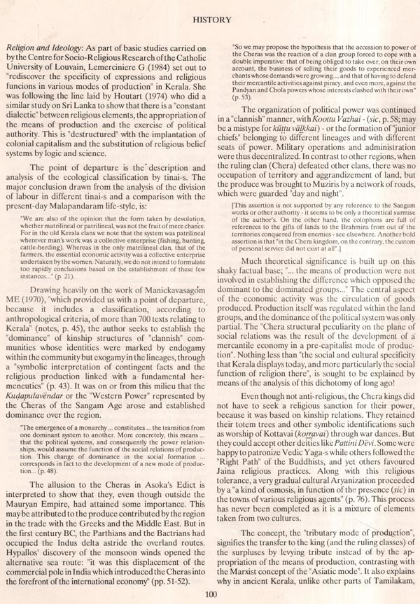 History, as has been wisely observed, is a "dangerous subject". We had convened a seminar in the ISDL at which some of the leading historians of Kerala were present. We are indebted to all of them for their valuable inputs but have to specifically mention Prof. M.G.S. Narayanan who advised us to stick to facts and let theory take care of itself. This advice we have tried to follow. Where we outline the theories, we have taken care to acknowledge their authorship and present the opposite views also to restore the balance. We had the advantages of the Tamil scholarship available in the ISDL for leaning heavily on classical Tamil works which have rightly been so much called into use for tracing early history. For the better-documented history after the Portuguese advent, we have contributions from several acknowledged authorities.