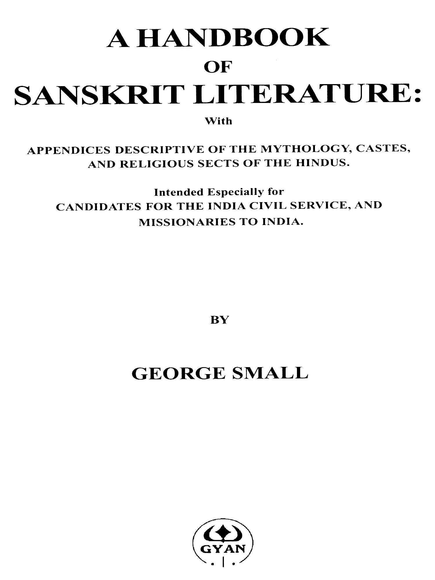 George Small was M.A. and authored "A Handbook of Sanskrit Literature" in 1866. He worked as a former missionary in Calcutta and Benares and a member of the Philological Society of London, his work remains a valuable resource on the subject.