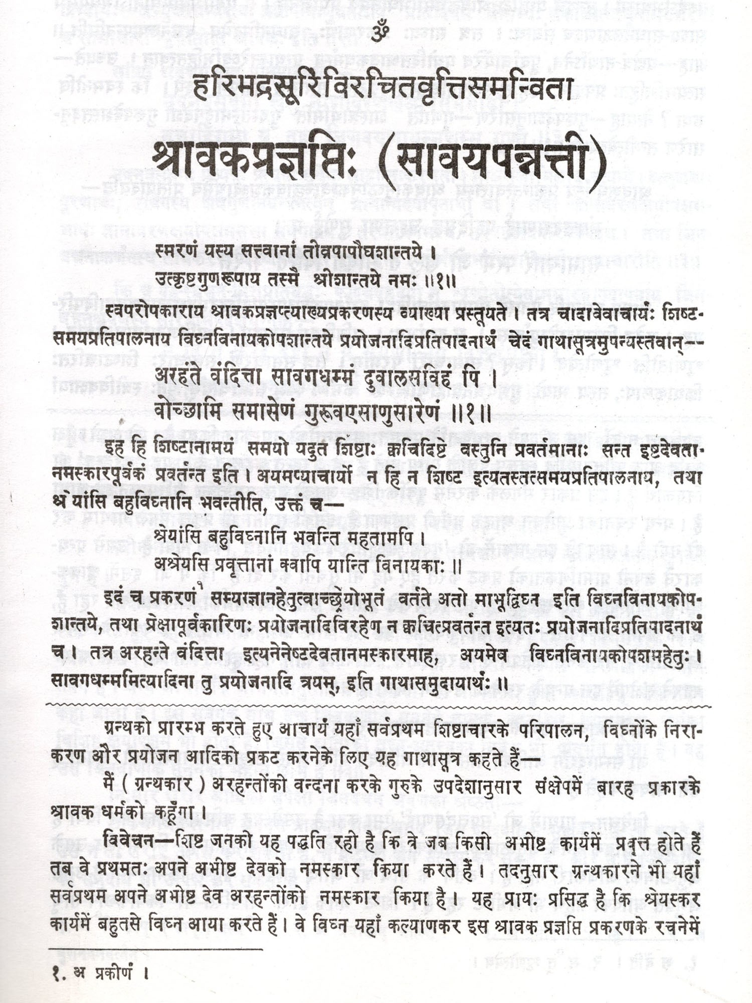 'सावयपन्नत्ती' या 'श्रावकप्रज्ञप्ति' अपने नाम के अनुसार श्रावकाचार विषयक प्राचीन रचना है। यह प्राकृत गाथाबद्ध है और उस पर संस्कृत टीका है। न तो मूल ग्रन्थ में और न उसकी टीका में ग्रन्थकार का तथा टीकाकार का नाम दिया है। फिर भी कुछ उल्लेखों के आधार पर, जिनका निर्देश प्रस्तावना में किया गया है, श्रावकप्रज्ञप्ति को आचार्य उमास्वाति की कृति माना जाता है। यह उमास्वाति वही माने जाते हैं जिनकी कृति 'तत्त्वार्थसूत्र' पाठभेदों के साथ दिगम्बर-श्वेताम्बर दोनों परम्पराओं में मान्य है। यद्यपि तत्त्वार्थसूत्र के सातवें अध्याय में वर्णित श्रवकाचार ही विस्तार से इस ग्रन्थ में वर्णित है फिर भी दोनों कृतियों का एककर्तृक होना सन्दिग्ध है। हाँ, इतना अवश्य कहा जा सकता है कि श्रावकप्रज्ञप्ति का आधार तत्त्वार्थसूत्र का सातवाँ अध्याय होना चाहिए। सम्यग्दर्शन, पाँच अणुव्रत, तीन गुणव्रत, चार शिक्षाव्रत तथा अन्त में समाधिमरण यह पूर्ण श्रावकाचार समस्त जैन-परम्परा को मान्य है। तत्त्वार्यसूत्र में तीन गुणव्रत और चार शिक्षाव्रतों को गुणव्रत और शिक्षाव्रत के रूप में विभाजित न करके सातों का निर्देश व्रतरूप में किया है। किन्तु श्रावकप्रज्ञप्ति में तीन गुणव्रत और चार शिक्षाव्रत के रूप में उनका कचन किया है। तथा प्रथम दिग्व्रत के पश्चात् भोगोपभोगपरिमाणव्रत का कथन गुणव्रतों में और देशव्रत का कथन भोगोपभोगपरिमाण व्रत के स्थान में न कर शिक्षाव्रतों में किया है। यह दोनों में अन्तर है। स्व. पं. सुखलाल जी ने अपने तत्त्वार्थसूत्र के विवेचन के पाद-टिप्पण में लिखा है-